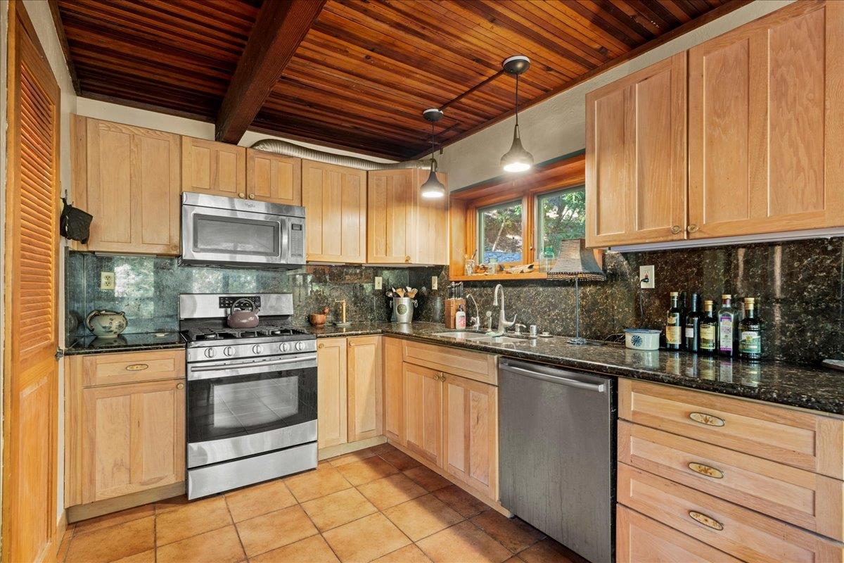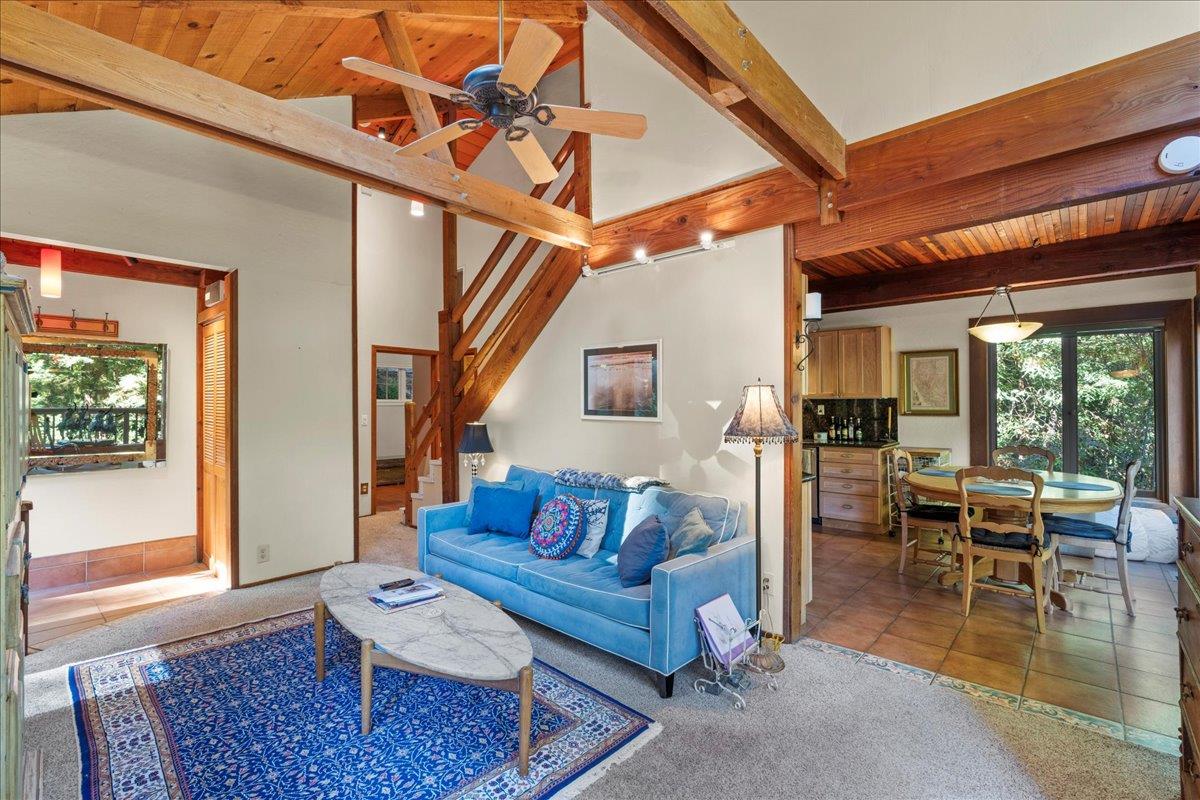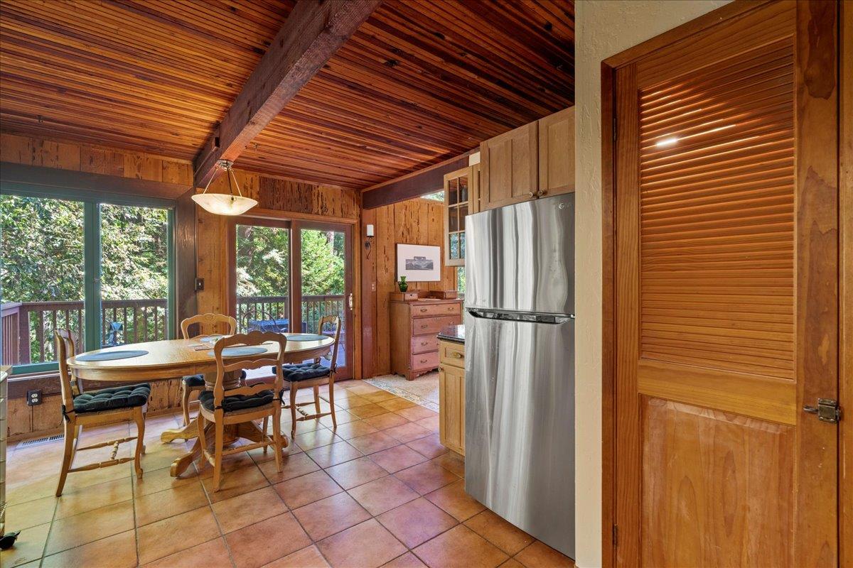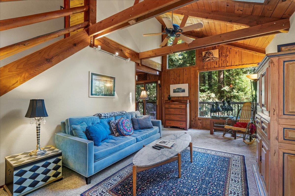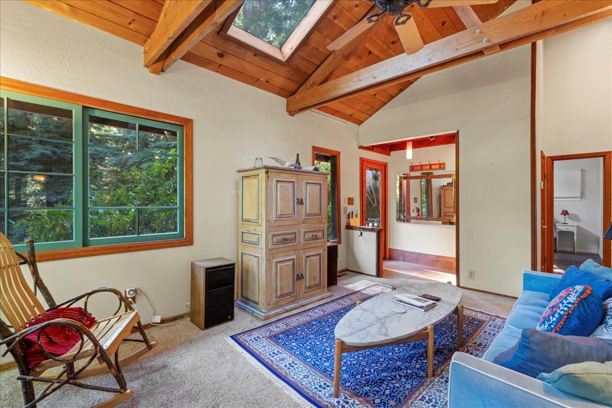 This house was custom built in 1976 from second growth redwood trees harvested on the property. It is situated between Boulder Creek and Brookdale, with easy access to Hwy 9, on a private almost half acre lot. The home has two access roads, a private lane below (off Monan) and one road above the home. Both roads lead to ample parking for 4 or more cars each. The lower parking includes an RV pad with a 30 amp plug and was recently graded and paved for easy parking and enjoyment. New 10 x 12'Tuff Shed on upper parking area. There's an approx. 220 sq ft basement/laundry that can be used as a workshop, additional storage, etc. New roof in 2023 by Moriarty Roofing with 10 Yr transferable warranty. Trex deck off kitchen, sit and enjoy the redwoods! Kitchen includes pantry, granite counters, solid ash cabinets, and stainless steel appliances. Home has truss & beam construction with blown insulation under the floor. 5000 gallon water tank connected to private well, (no water bills!), Culligan water softener, UV light between water tank and pump, and ozone bubble system (water you can drink!). 10kw Generac on demand generator (kicks in when power goes out) included with property. Short distance to downtown Boulder Creek. Lots of summer sun on the property. Buyer to verify all info.