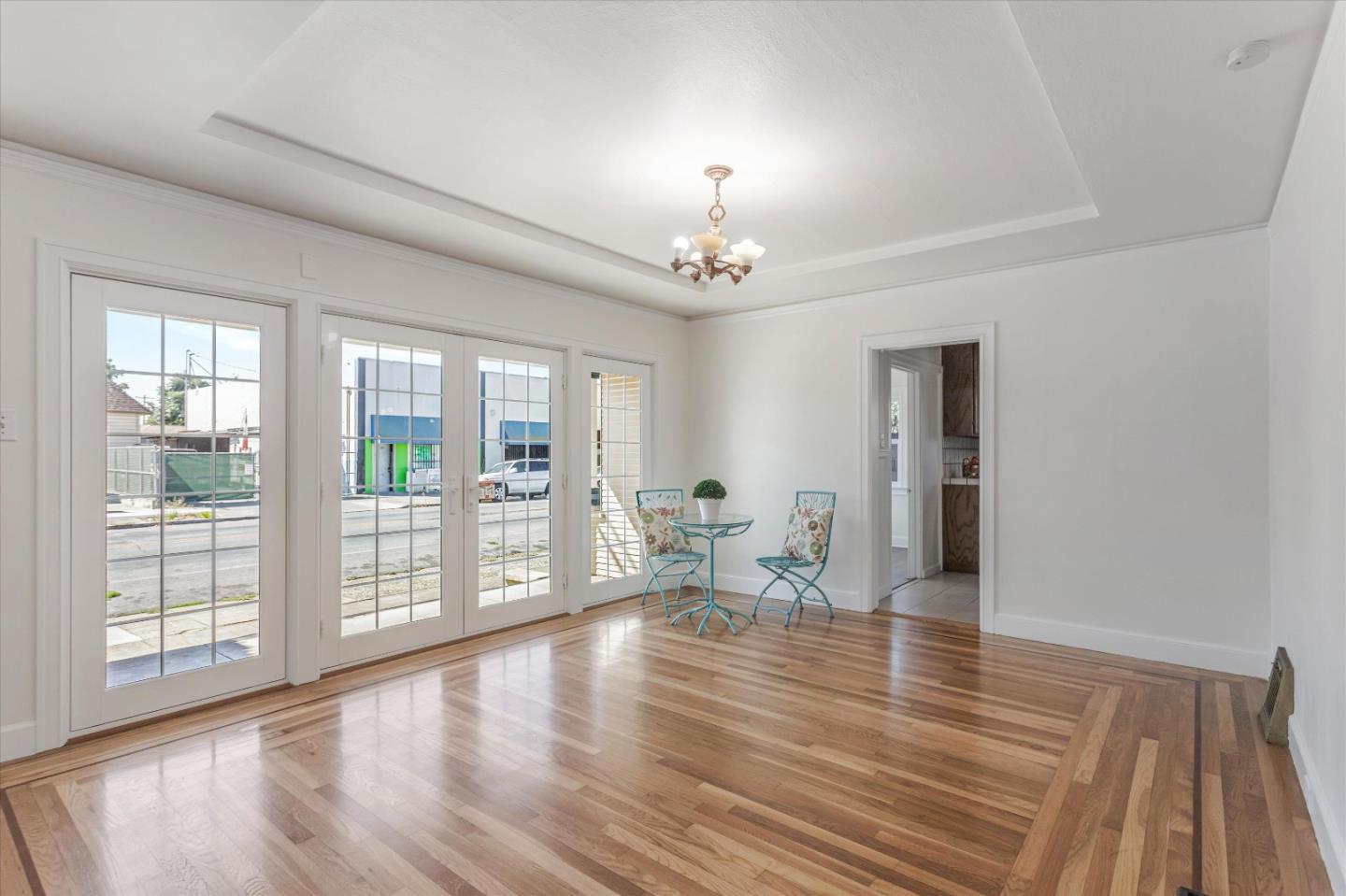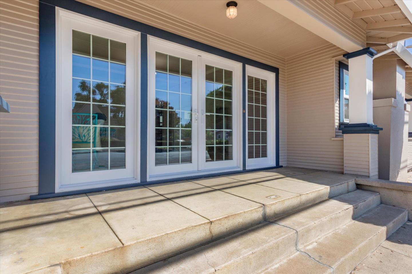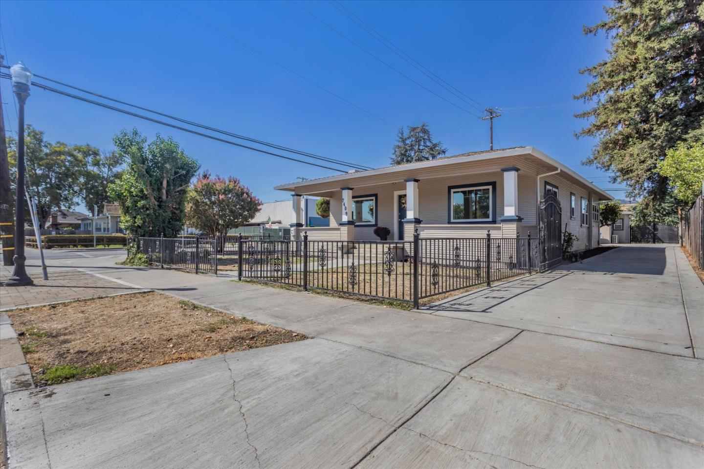 This is a charming turn of the century Craftsman's home. Sought after double dwelling property that is perfect multi-family living or investment. This property is located approx. two blocks from downtown Gilroy & is reminiscent of Gilroy's yesteryear. Shiplap const, wide solid stairs at front and side entries where you will be greeted by gleaming hardwood floors in L.R. & formal D.R. New expansive French doors in formal D.R. New double pane windows throughout the main house. Newer HVAC system in main house. Beautiful wood moulding adorns archway trim, separating L.R. & D.R. The rooms are finished w/crown moulding, baseboards and coffered ceilings. Main house is approx 1320 S.F. consisting of 2 Bdms, plus a den/office or bedroom, 1 Ba., a large laundry room, with partial basement access. Large bright kitchen with ceramic tile. ADU is approx. 600 S.F., 2 Bdms, 1 Ba, A/C. This house has alley access & a long pass-through driveway, that can accommodate several cars. Both houses have separate addresses & utilities. Water is under main house meter. Property is fenced with wrought iron gates.