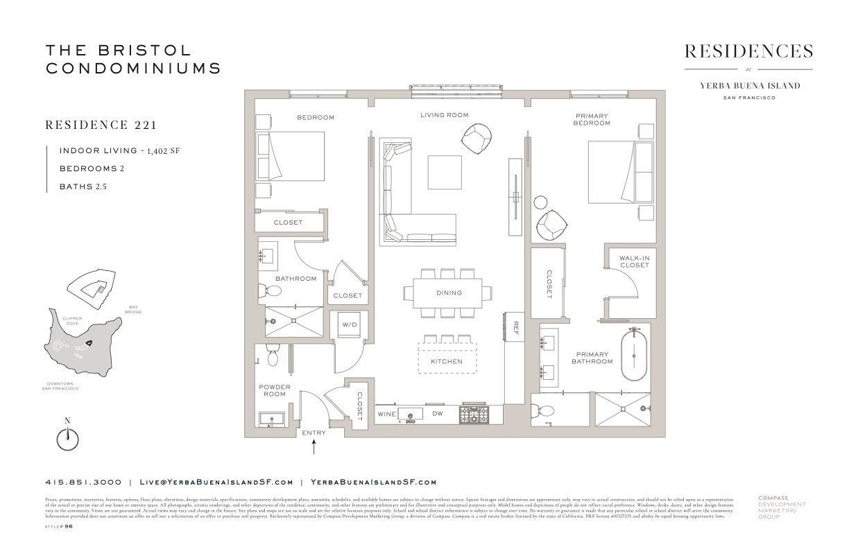 The Bristol @ Yerba Buena Island offers residents a new way to experience San Francisco surrounded by 72-acres of parks & open spaces & world class views, located a short 7-minute ferry ride from the SF Ferry Building & the heart of the SF. This one-of-a-kind two-bedroom home features a gracious floor plan w/ 10' ceilings, floor to ceiling windows overlooking a lushly planted interior courtyard. Luxury interior finishes include: Arclinea Italian cabinetry, Miele appliances, Dornbrach faucets, primary baths w/ slab Carrara marble countertops, soaking tubs & spacious walk-in showers w/ Carrara surrounds. On-suite baths @ the guest room, a guest powder bath, wide-plank white oak flooring & level-4 hand finished smooth walls throughout add a timeless beauty to the offering. Residents enjoy a rich amenity offering including: fitness center, yoga studio, roof-top lounge w/ BBQs, open air lobby lounge w/ fireplace, a 1-acre off-leash dog park, 6-acre park w/ spectacular views, the Island Clubhouse (coming soon) & other amenities to numerous to list, all create an immersive lifestyle you can only find @ Yerba Buena Island. Secured garage parking available for purchase. Images/views are representativ
