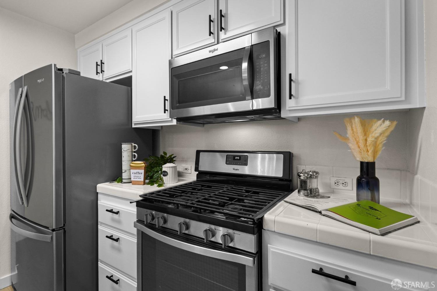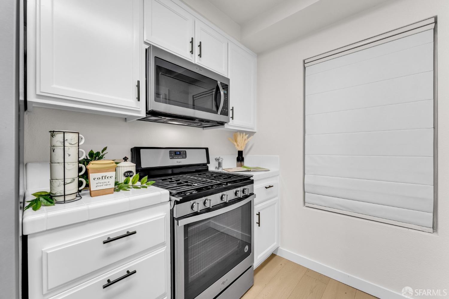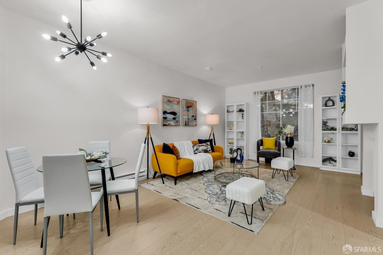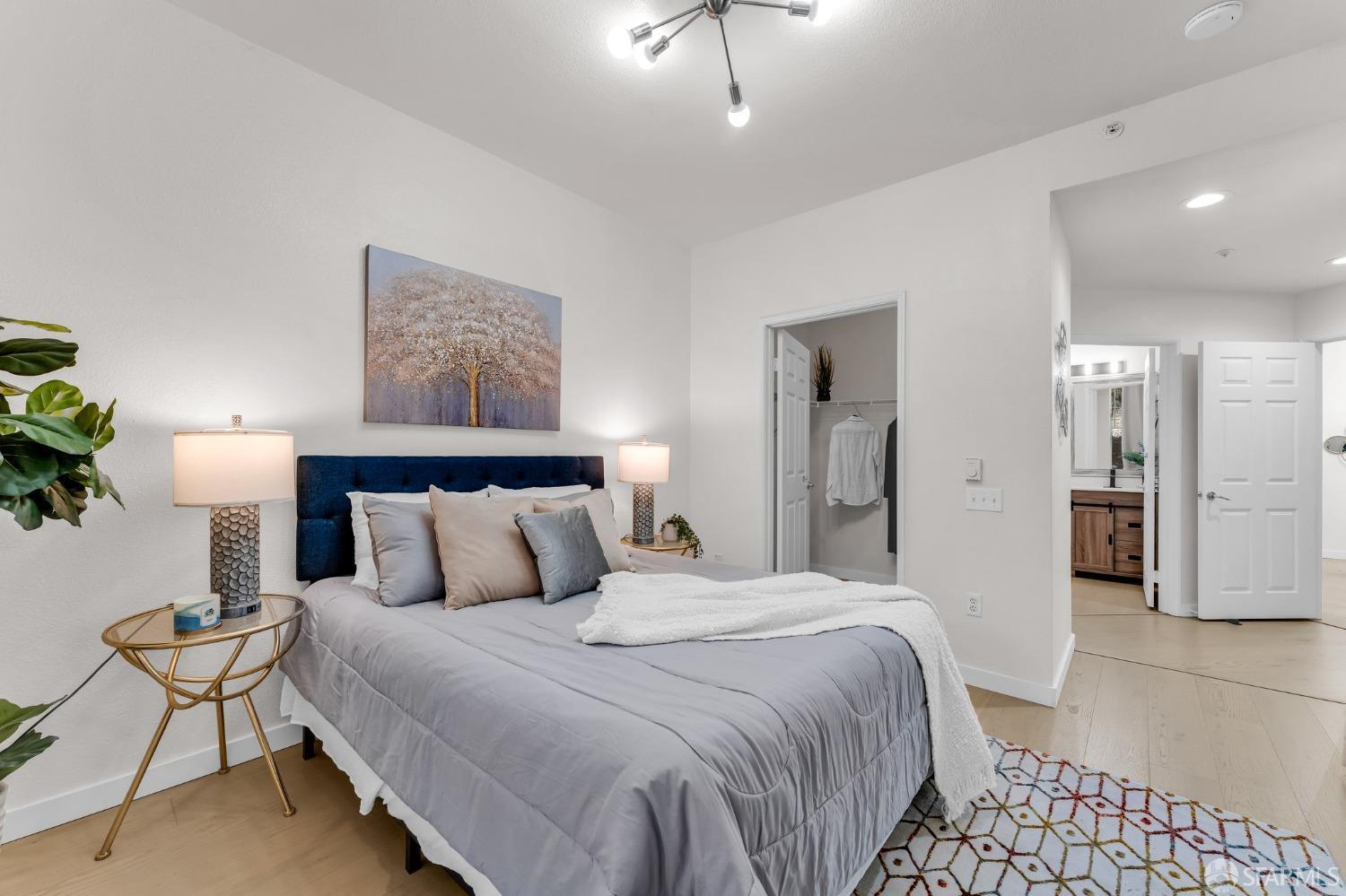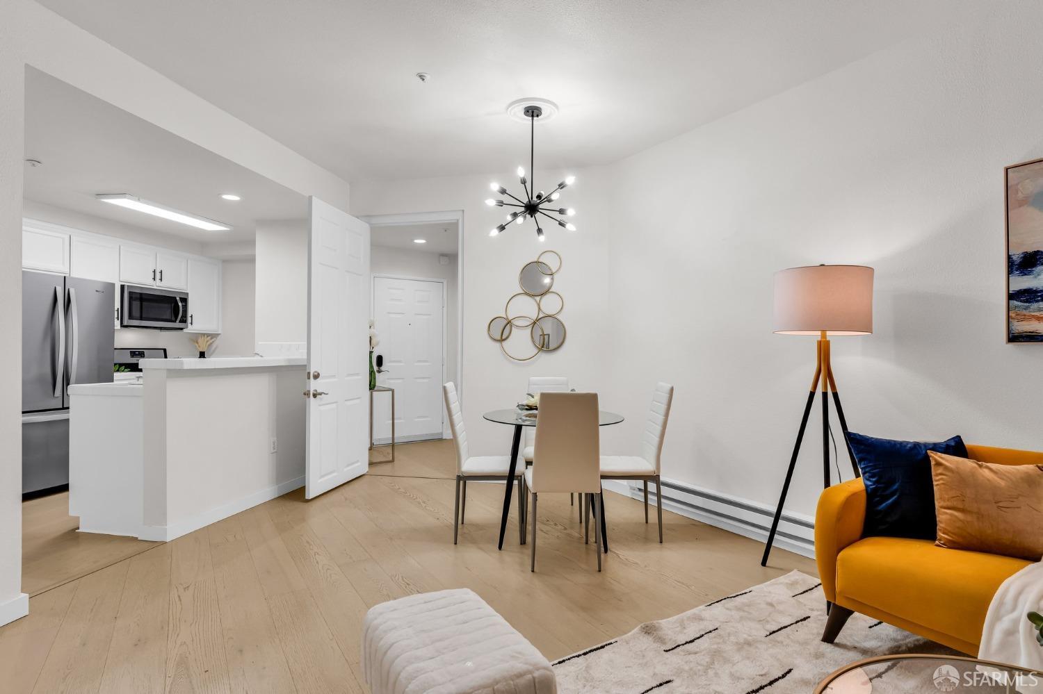 Experience a sanctuary of privacy and tranquility in this low-rise community, where sophistication meets comfort. This exquisite residence spans 1,119 square feet, featuring two spacious bedrooms and two spacious bathrooms. The 2nd bathroom has been thoughtfully upgraded to provide a serene escape. Step inside to discover a home that exudes sophistication, with freshly painted cabinets accented by modern hardware and new LED lighting that illuminates the space with a warm and inviting glow. The open layout seamlessly connects the living area to a kitchen equipped with stainless steel appliances and a gas stove, perfect for culinary enthusiasts. This pet-friendly residence ensures comfort with electric baseboard heating and includes a washer and dryer in the unit for added convenience.Enjoy the luxury of two independent parking spaces in the garage, conveniently located near the elevator. Community amenities abound, offering a lifestyle of leisure and wellness. Take advantage of the heated pool, unwind in the sauna, or maintain your fitness routine in the well-appointed gym. A security gate provides an added layer of assurance, while guest parking accommodates visitors effortlessly. Make this exceptional property your new home and embrace the vibrant lifestyle of Oakland.