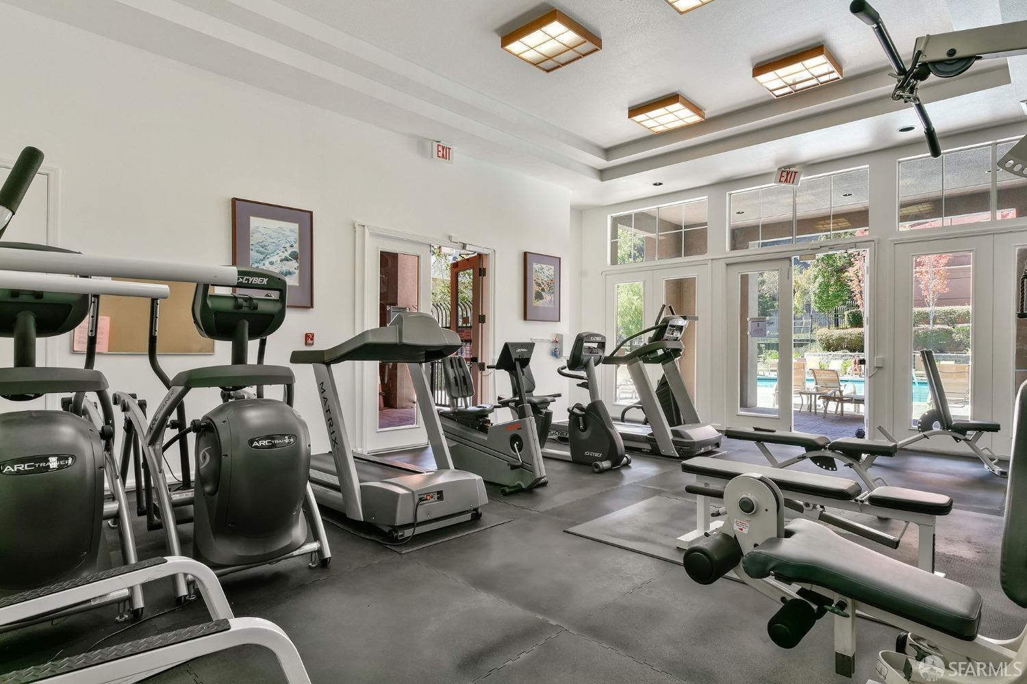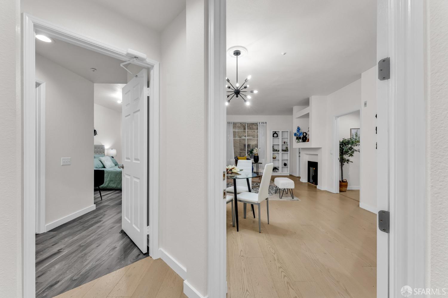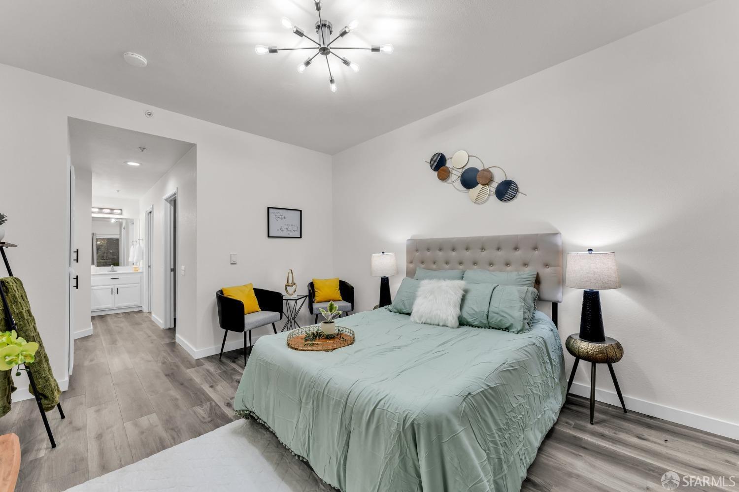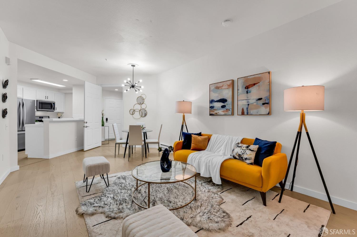 Experience a sanctuary of privacy and tranquility in this low-rise community, where sophistication meets comfort. This exquisite residence spans 1,119 square feet, featuring two spacious bedrooms and two spacious bathrooms. The 2nd bathroom has been thoughtfully upgraded to provide a serene escape. Step inside to discover a home that exudes sophistication, with freshly painted cabinets accented by modern hardware and new LED lighting that illuminates the space with a warm and inviting glow. The open layout seamlessly connects the living area to a kitchen equipped with stainless steel appliances and a gas stove, perfect for culinary enthusiasts. This pet-friendly residence ensures comfort with electric baseboard heating and includes a washer and dryer in the unit for added convenience.Enjoy the luxury of two independent parking spaces in the garage, conveniently located near the elevator. Community amenities abound, offering a lifestyle of leisure and wellness. Take advantage of the heated pool, unwind in the sauna, or maintain your fitness routine in the well-appointed gym. A security gate provides an added layer of assurance, while guest parking accommodates visitors effortlessly. Make this exceptional property your new home and embrace the vibrant lifestyle of Oakland.