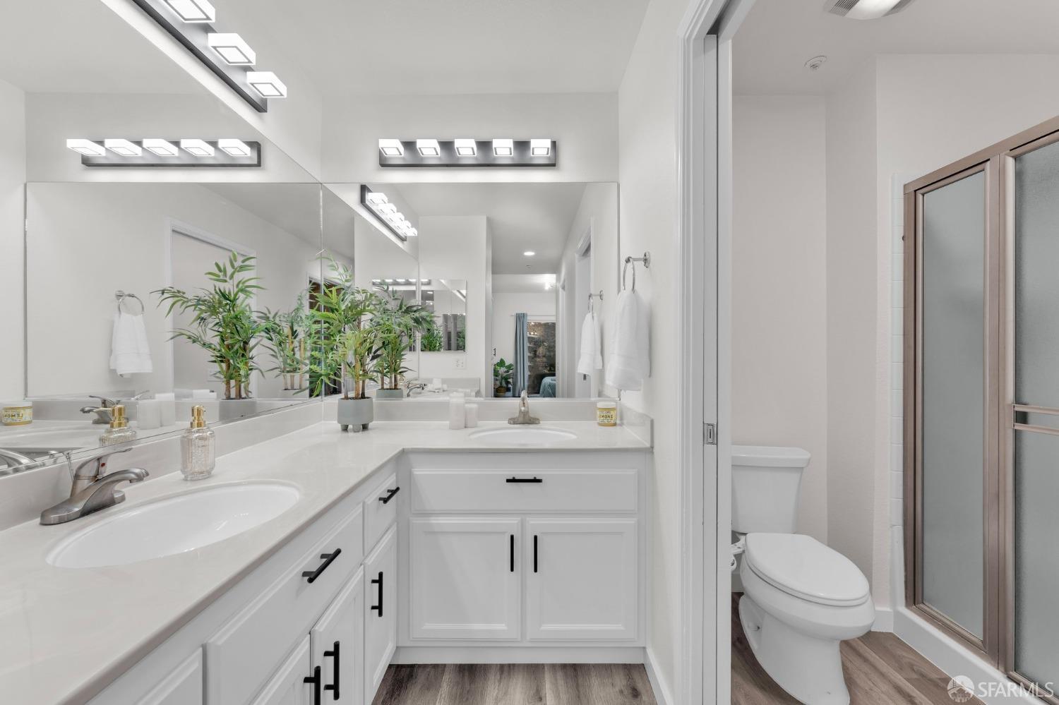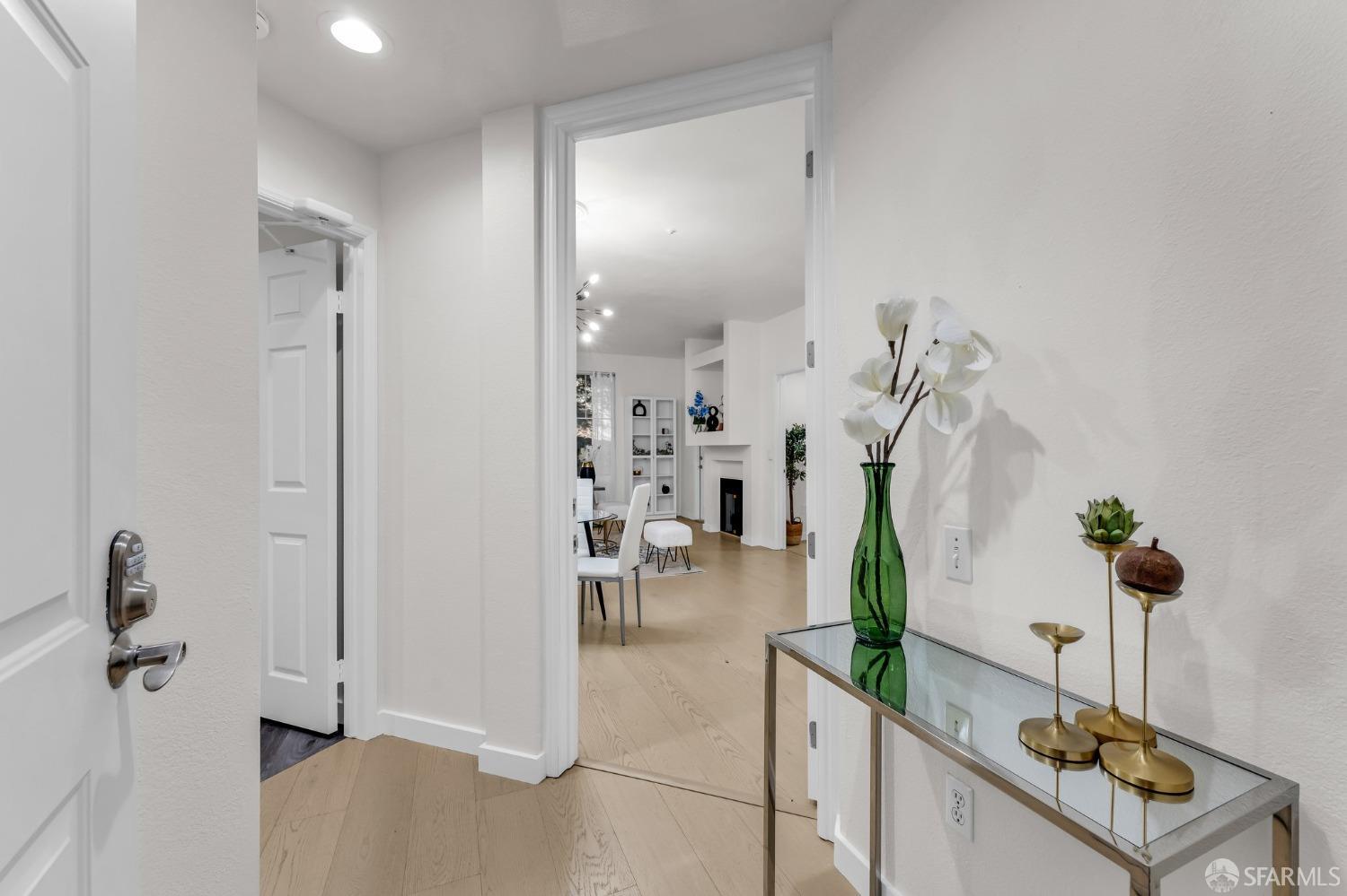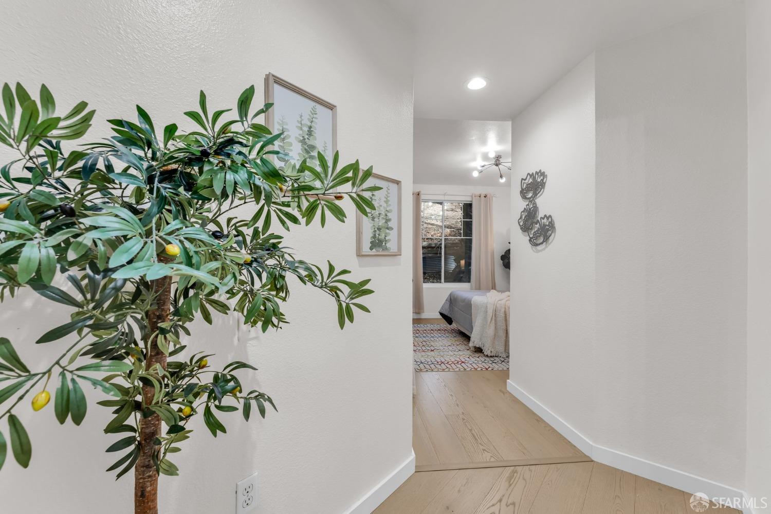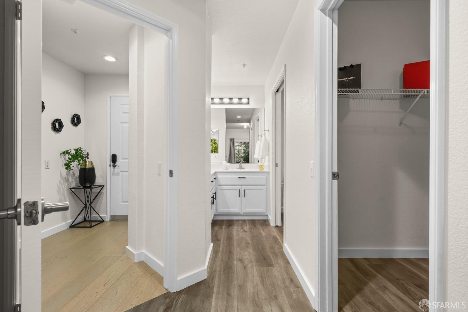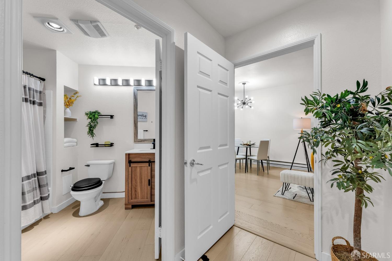 Experience a sanctuary of privacy and tranquility in this low-rise community, where sophistication meets comfort. This exquisite residence spans 1,119 square feet, featuring two spacious bedrooms and two spacious bathrooms. The 2nd bathroom has been thoughtfully upgraded to provide a serene escape. Step inside to discover a home that exudes sophistication, with freshly painted cabinets accented by modern hardware and new LED lighting that illuminates the space with a warm and inviting glow. The open layout seamlessly connects the living area to a kitchen equipped with stainless steel appliances and a gas stove, perfect for culinary enthusiasts. This pet-friendly residence ensures comfort with electric baseboard heating and includes a washer and dryer in the unit for added convenience.Enjoy the luxury of two independent parking spaces in the garage, conveniently located near the elevator. Community amenities abound, offering a lifestyle of leisure and wellness. Take advantage of the heated pool, unwind in the sauna, or maintain your fitness routine in the well-appointed gym. A security gate provides an added layer of assurance, while guest parking accommodates visitors effortlessly. Make this exceptional property your new home and embrace the vibrant lifestyle of Oakland.