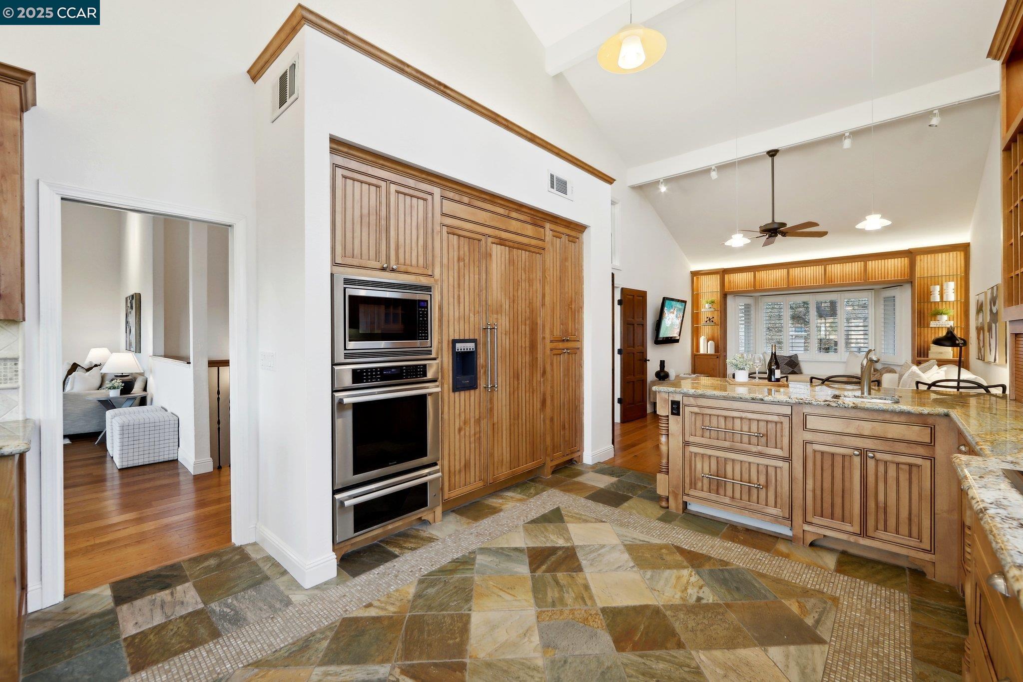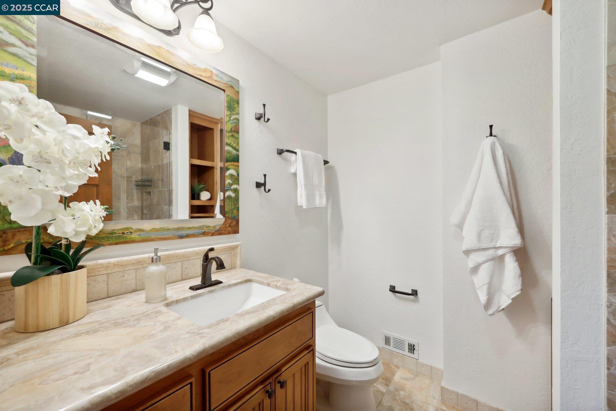 Do you love light and views? This may be what you have been waiting for! Architect designed and thoughtfully expanded (+500 sq.ft.) in 2010 for previous contractor owner to take advantage of larger lot, exceptional views, and abundant natural light in this special location. This expanded Forrest Hills lives like a SINGLE-LEVEL with *2 steps in from the street *2 steps in from garage to kitchen *Primary suite and all living areas on the main level. 2010 REMODEL INCLUDES *Modern open kitchen with vaulted ceilings and custom cabinets *Expanded primary suite with top of the world views large custom bath, and his & hers closets *Expanded lower level include extra bedroom (total 3 + family room downstairs) and extra full bath (total 2 downstairs) *Upgraded electrical and structural. *All new (2017) Furnace and A/C (22023) THE EXTERIOR is just as impressive with all new windows and doors, smooth coat stucco with stone accents, long-lasting tile roof, finished garage with insulated door, and ipe wood decks with glass railings. LOVINGLY MAINTAINED and improved by the current owner, and now freshened up and ready for you! Includes access to popular Moraga Country Club - including golf, tennis, swim, pickleball, bocce, gym, restaurants and more!!!