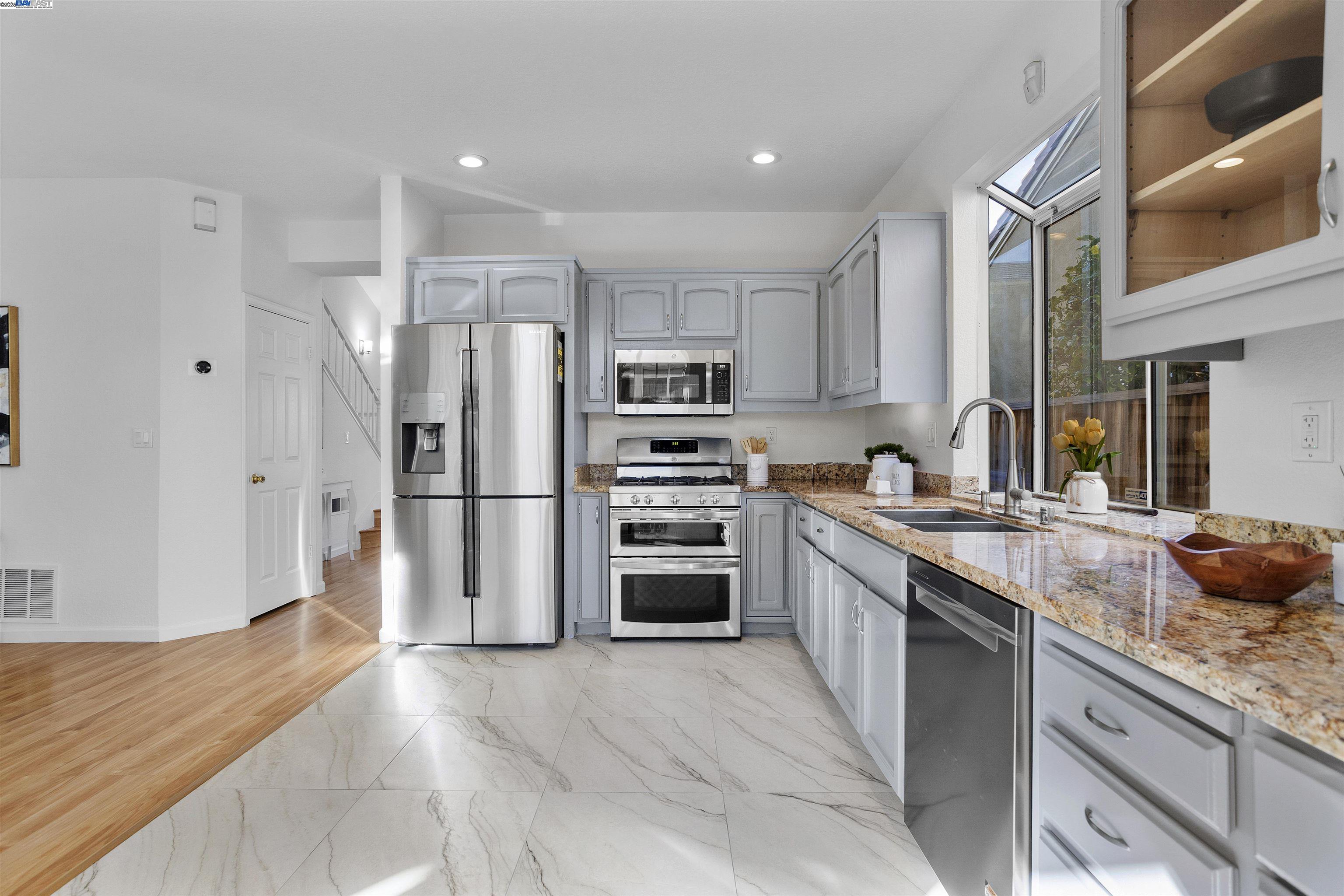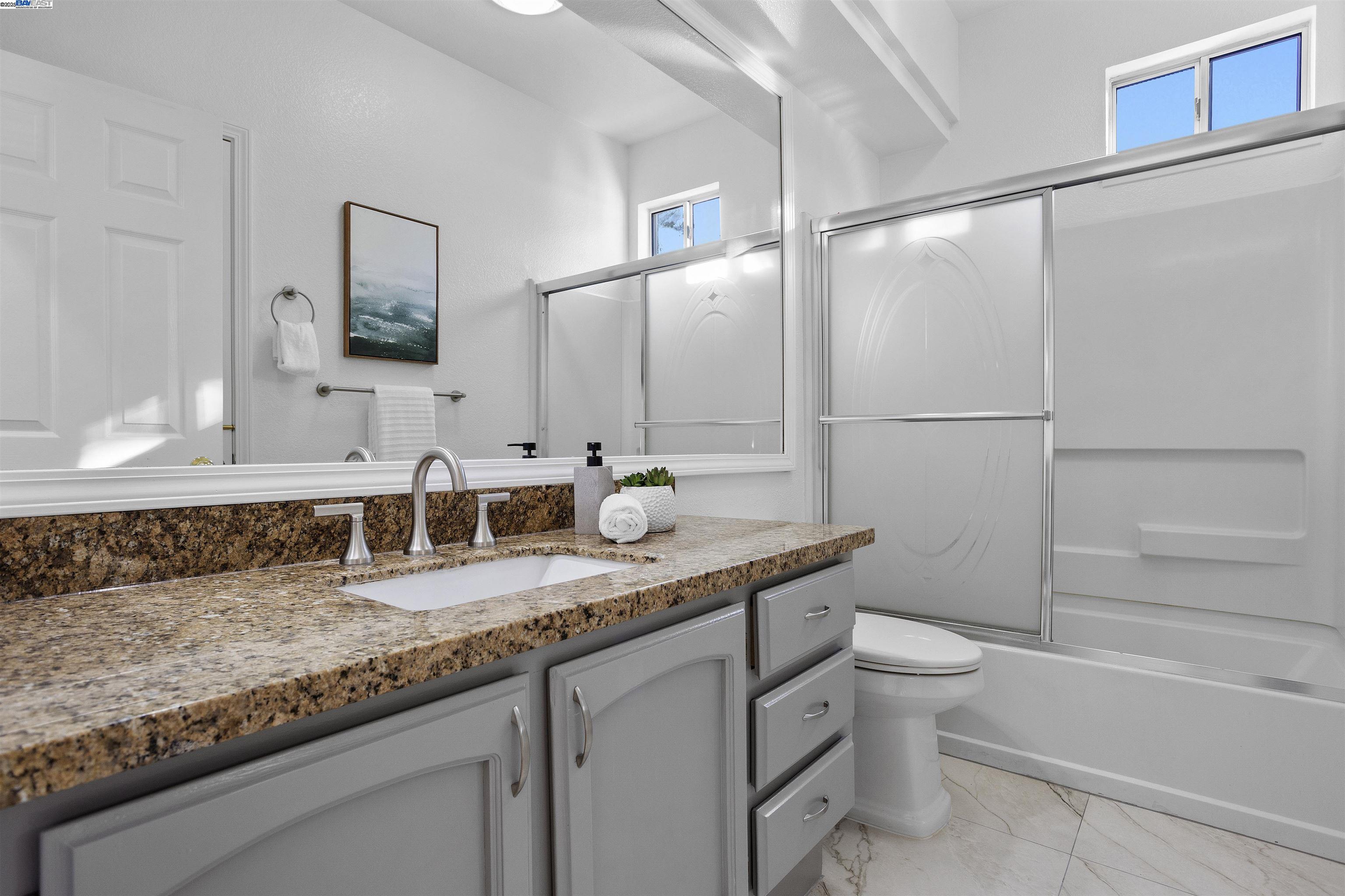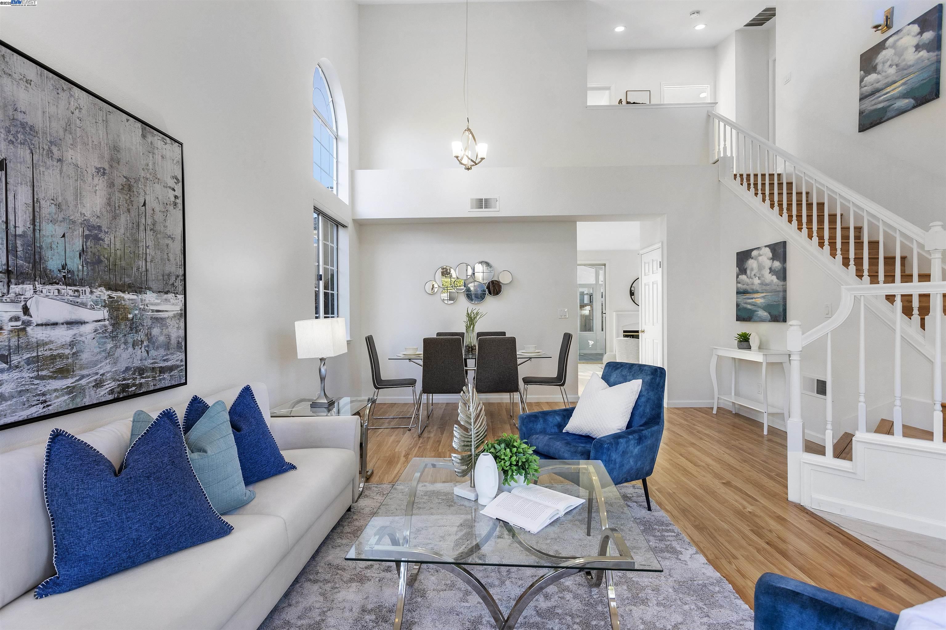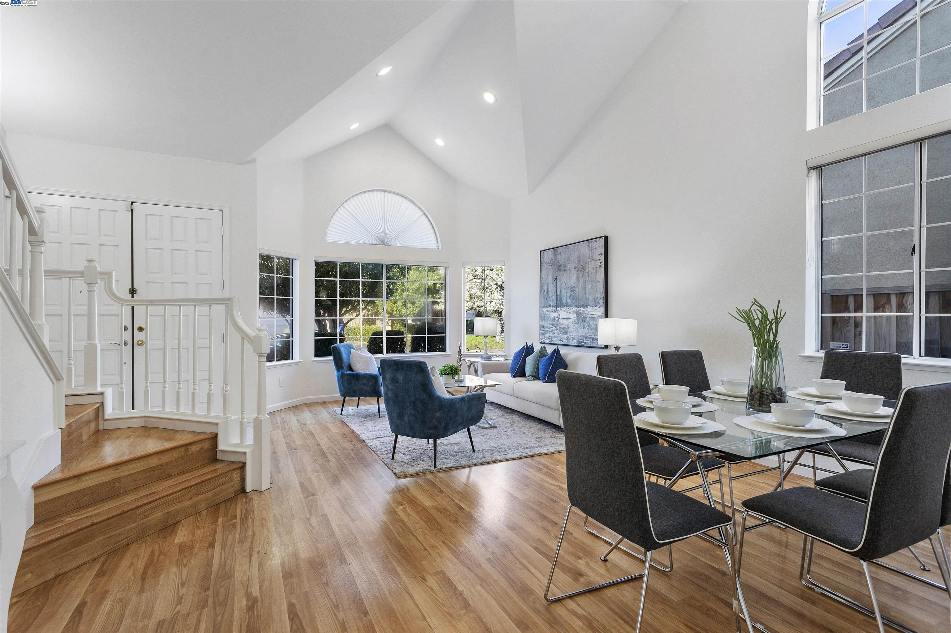 Welcome to a rare-to-find Ardenwood home with four bedrooms & three full baths, including one bedroom & an entire bath downstairs. As you enter the house, you will find an entertaining delight: a spacious living room adorned with vaulted high ceilings seamlessly transitioning into the formal dining area—a cozy family room with a fireplace. A sunroom overlooking a kitchen and a backyard provides perfect social gathering spaces. Upstairs are three bedrooms, with a primary bedroom adjoining a standing shower, bathtub, double vanity, and Walk-in Closet—two more bedrooms on the second floor for your work-from-home or household members & guests. This home has huge windows for ample natural light & ventilation, a two-car garage with laundry units, & a new epoxy floor finish. The backyard has pavers, a fruit tree, & an area for a vegetable garden. This house is in a cul-de-sac, which makes it very convenient. It is also in a great school district from elementary to high school. It is conveniently located near Karl Nordvik Park. Drive or bike to Coyote Hills for a weekend walk. There are many options for grocery stores, restaurants, a public library, & easy access to Interstate 880, CA84, Union City, and Fremont BART. Corporate shuttles nearby are available for your daily commute.