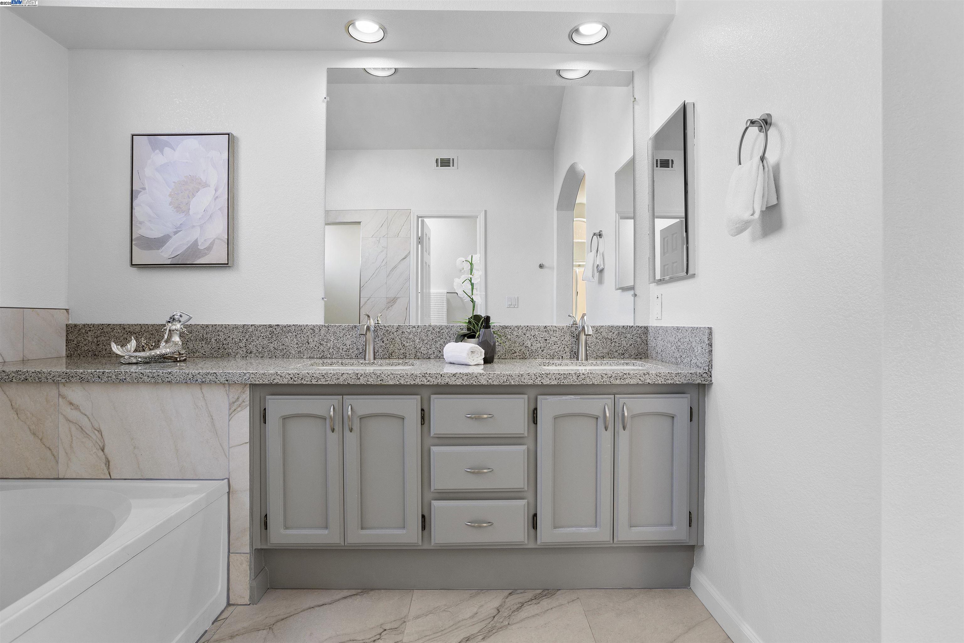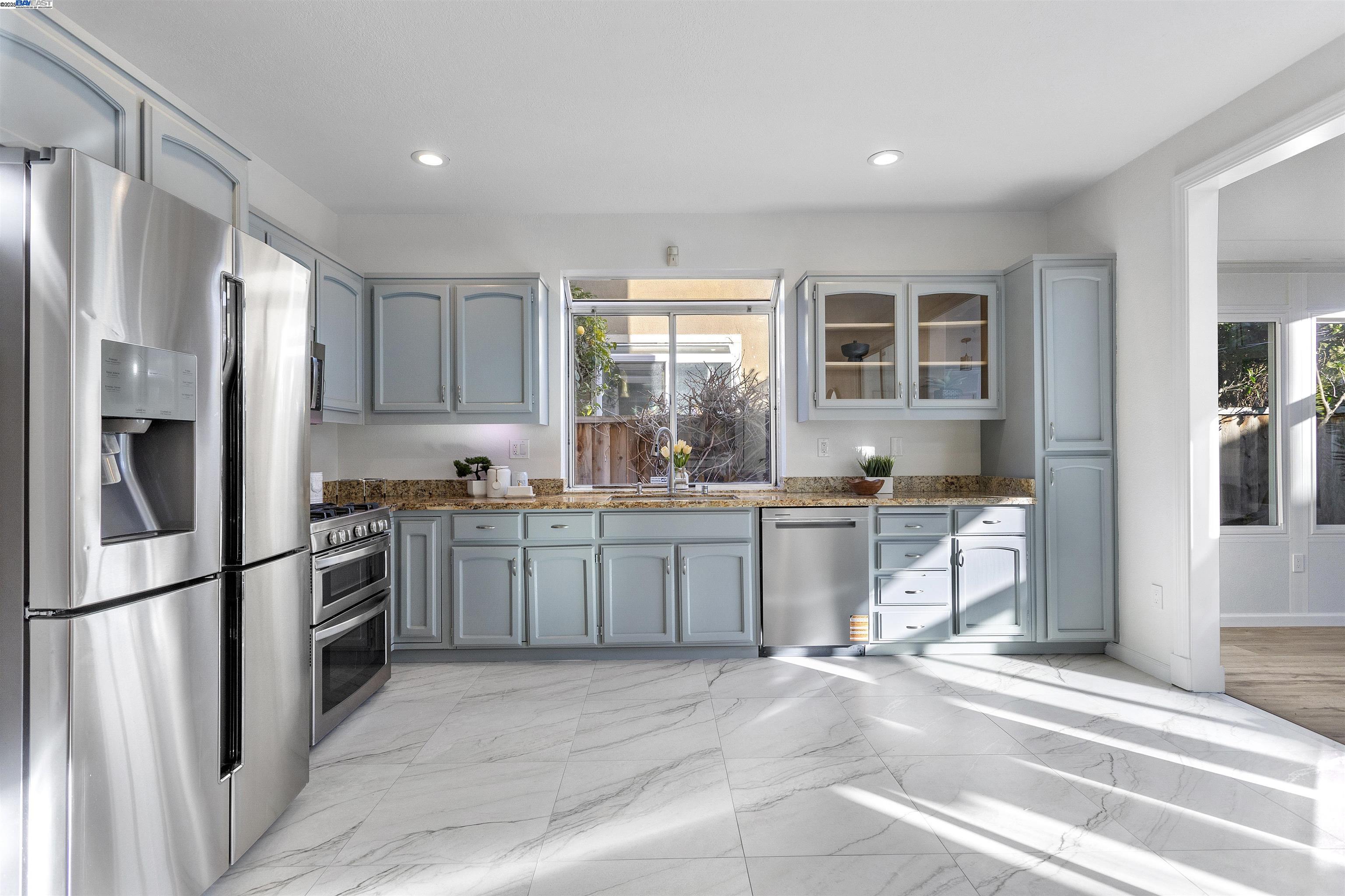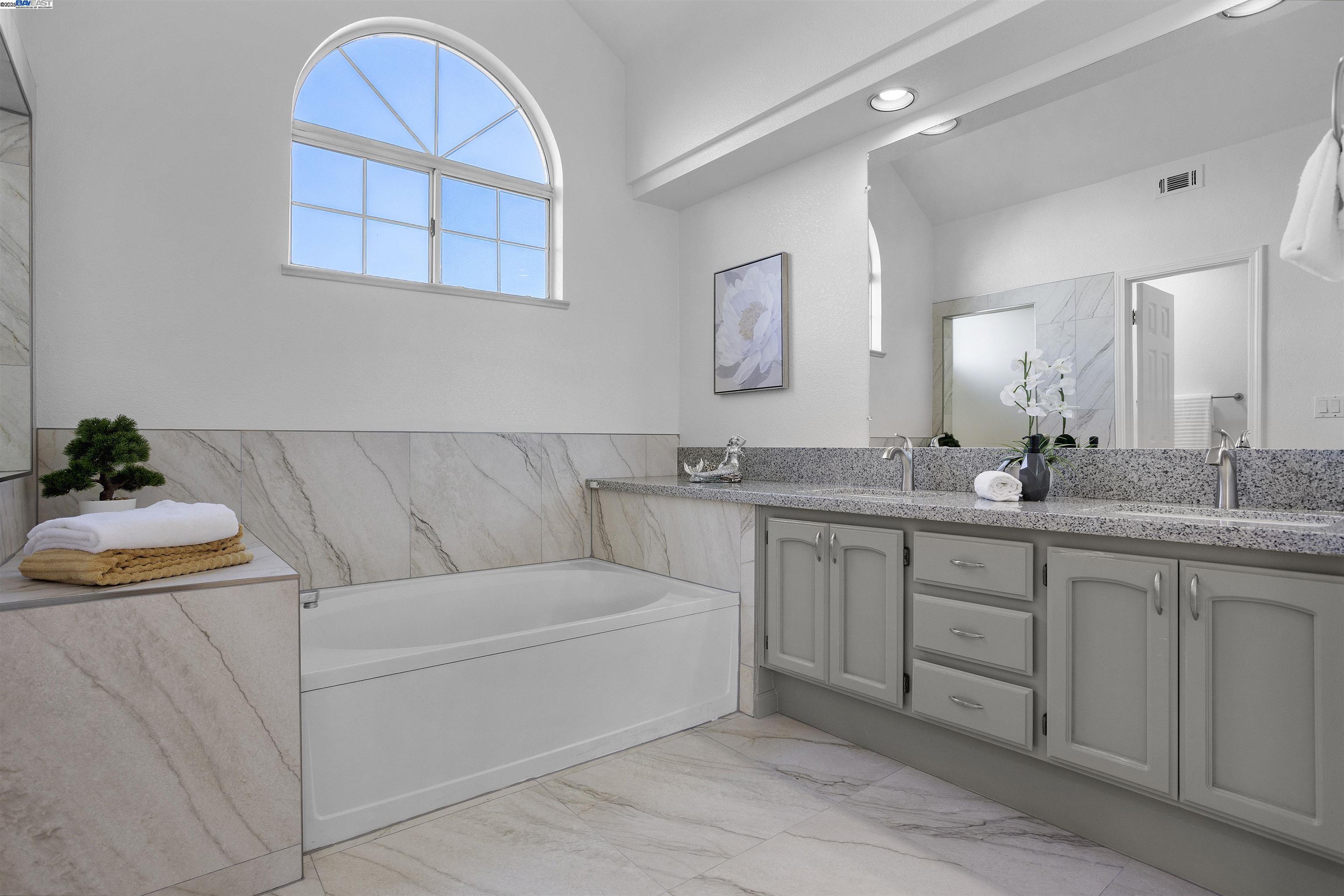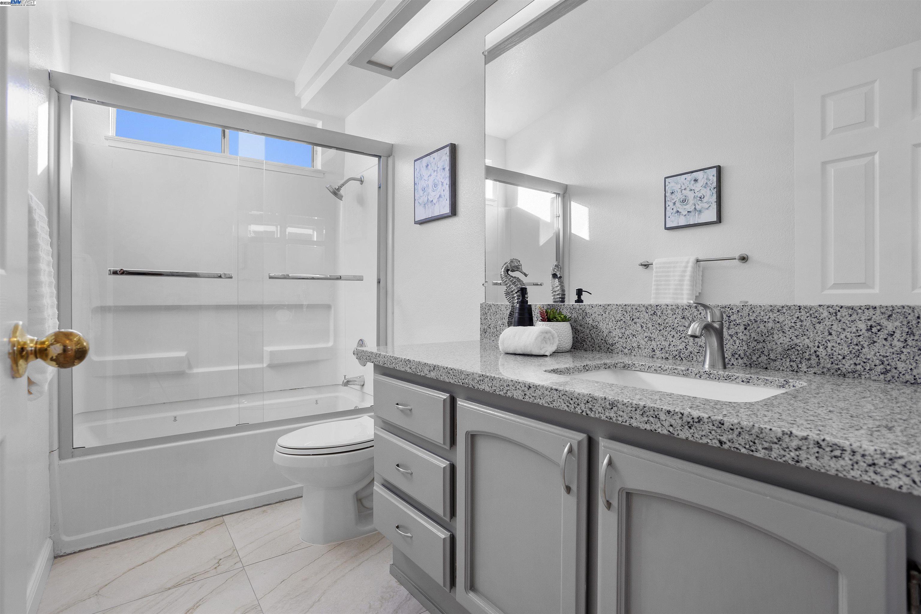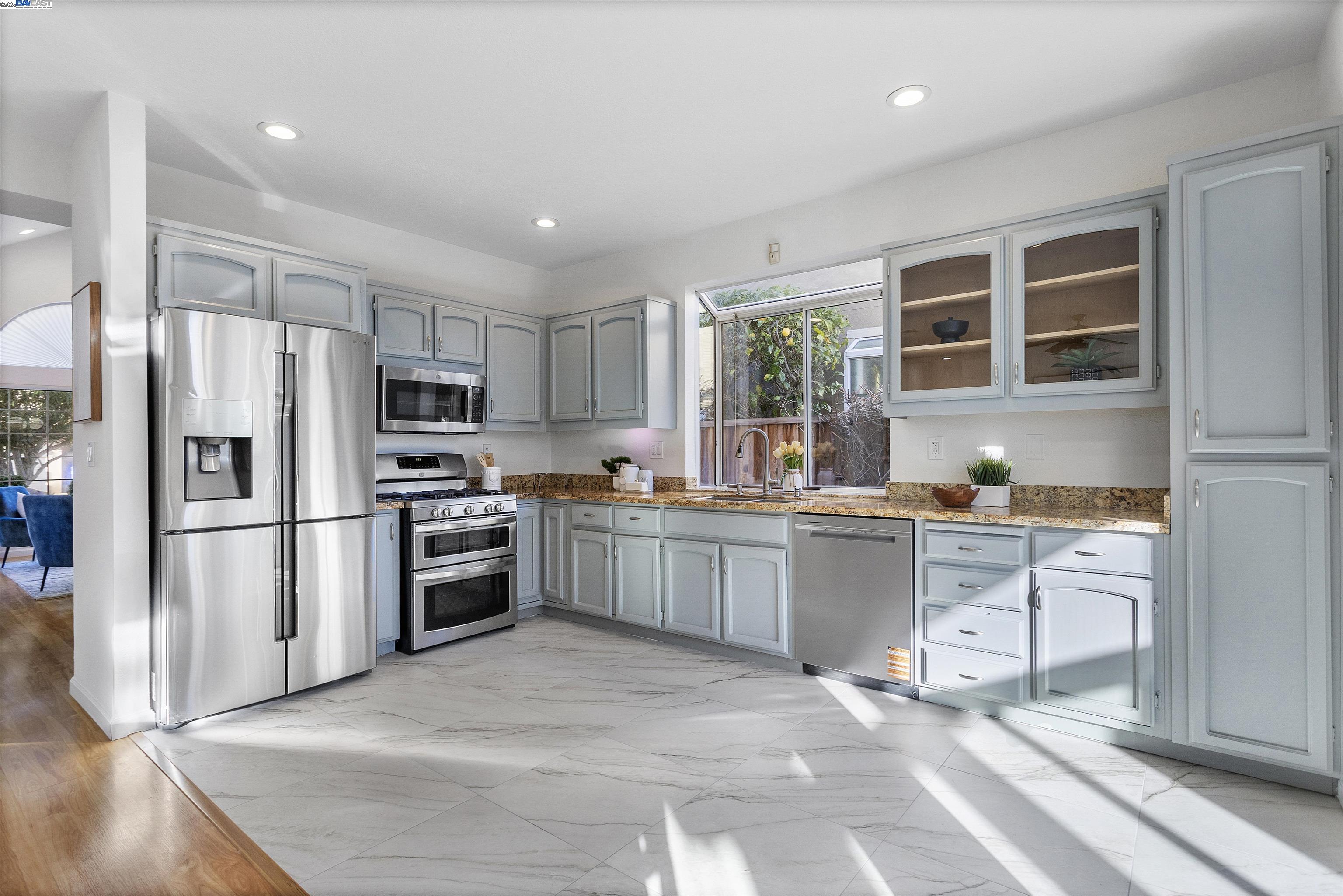 Welcome to a rare-to-find Ardenwood home with four bedrooms & three full baths, including one bedroom & an entire bath downstairs. As you enter the house, you will find an entertaining delight: a spacious living room adorned with vaulted high ceilings seamlessly transitioning into the formal dining area—a cozy family room with a fireplace. A sunroom overlooking a kitchen and a backyard provides perfect social gathering spaces. Upstairs are three bedrooms, with a primary bedroom adjoining a standing shower, bathtub, double vanity, and Walk-in Closet—two more bedrooms on the second floor for your work-from-home or household members & guests. This home has huge windows for ample natural light & ventilation, a two-car garage with laundry units, & a new epoxy floor finish. The backyard has pavers, a fruit tree, & an area for a vegetable garden. This house is in a cul-de-sac, which makes it very convenient. It is also in a great school district from elementary to high school. It is conveniently located near Karl Nordvik Park. Drive or bike to Coyote Hills for a weekend walk. There are many options for grocery stores, restaurants, a public library, & easy access to Interstate 880, CA84, Union City, and Fremont BART. Corporate shuttles nearby are available for your daily commute.