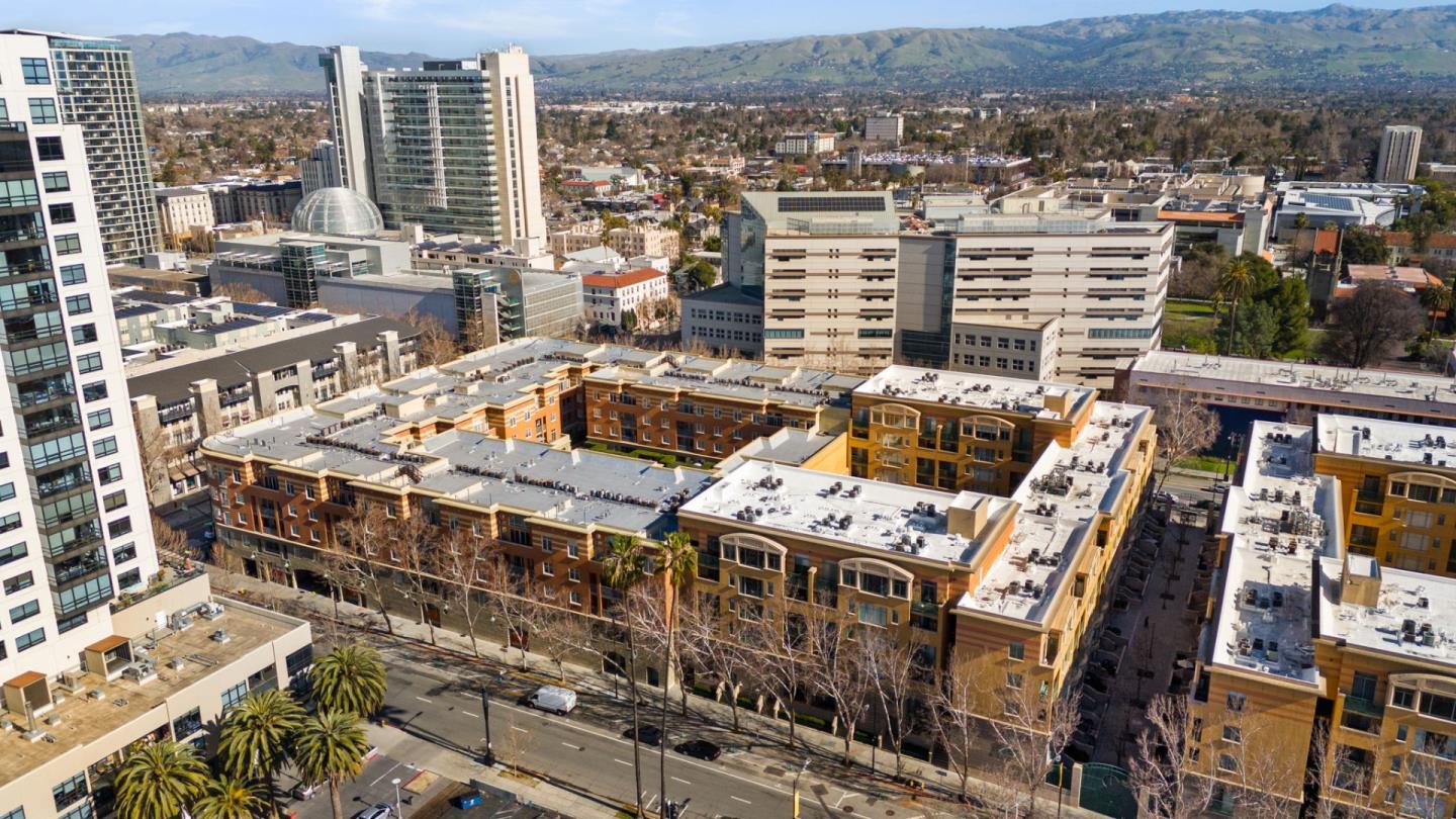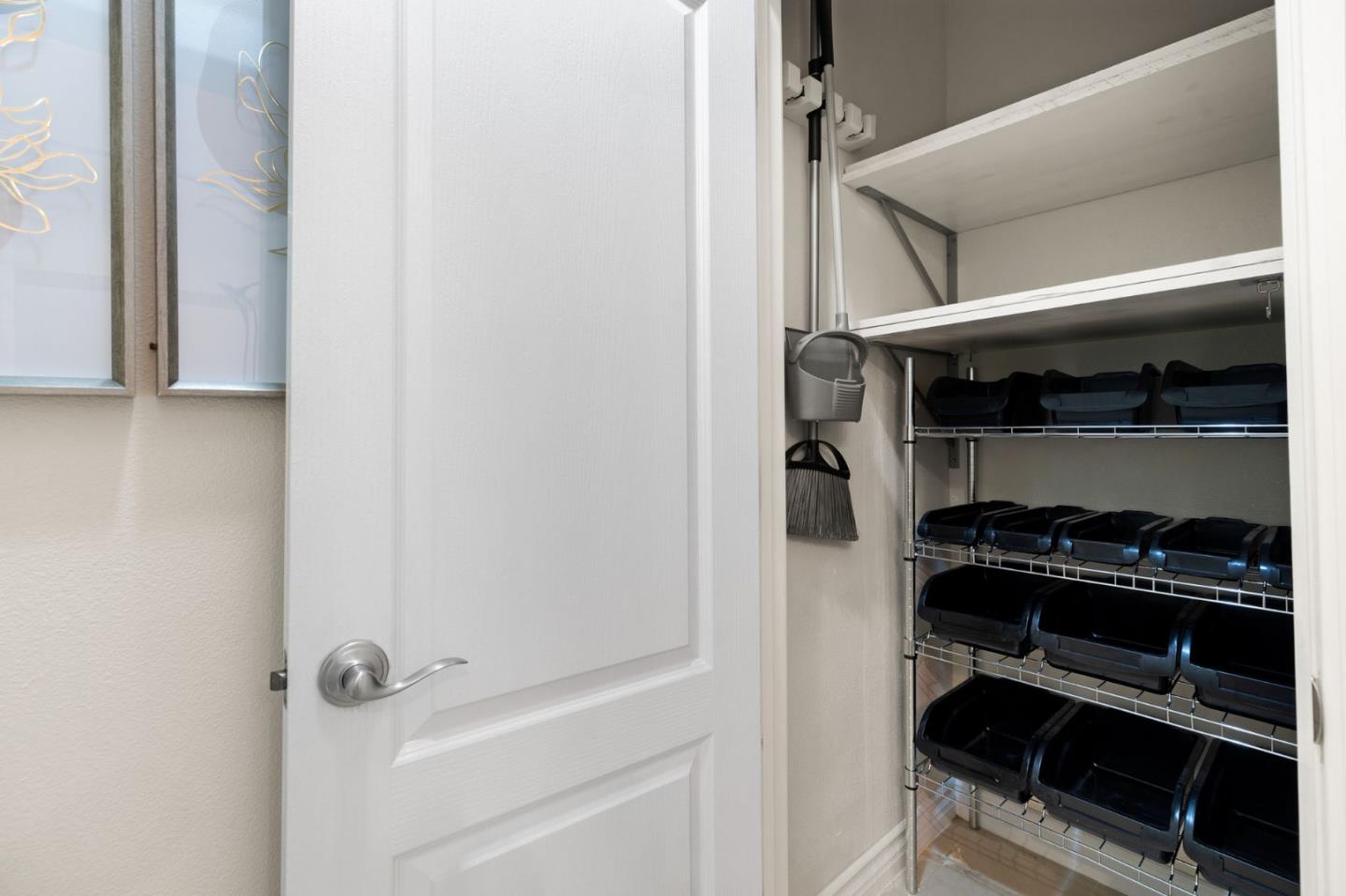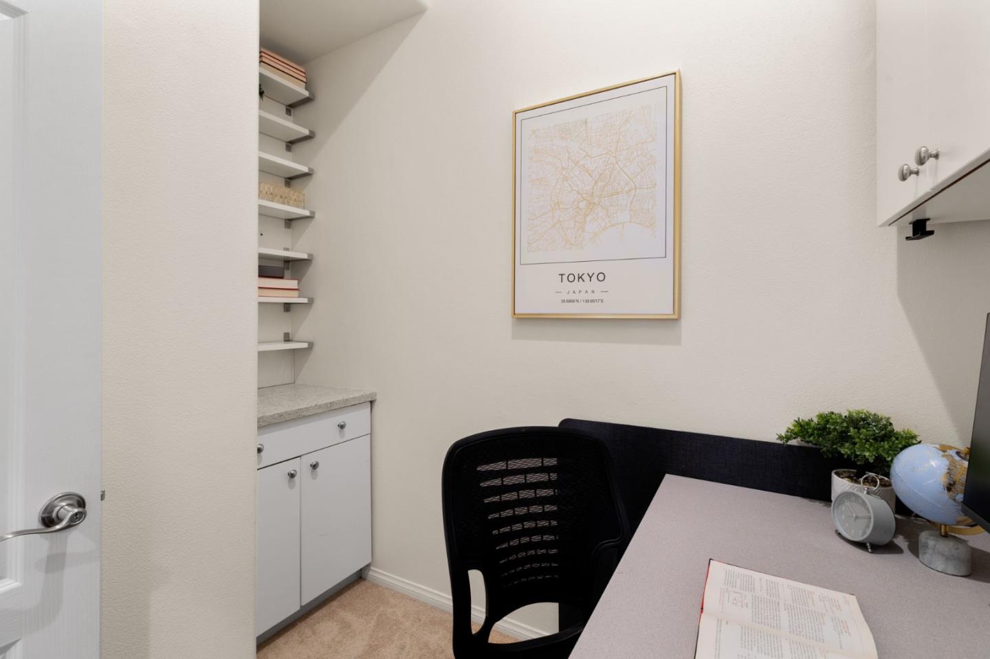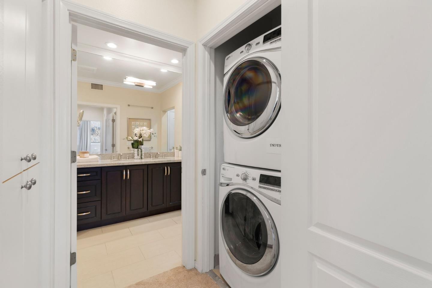 This luxury condo has been completely remodeled and has it all. Top floor, penthouse unit. Vaulted ceilings with large windows and tons of natural sunlight. 2 bedrooms, 2 full bathrooms, and a dedicated office. Gorgeous chef's kitchen with stainless steel appliances and granite counters. Custom kitchen cabinets with soft-close doors, pull-out drawers, and lots of pantry space. Extended kitchen peninsula for extra counter space. Huge primary bedroom suite with large walk-in closet. Amazing spa-like primary bath retreat with custom stall shower and huge luxury Kalia 3 designer square tub. Soak your worries away! Fully functioning home office that has been wired for networking and has tons of cabinet space. Home has been completely wired for Control4 smart home and audio-visual capabilities for the absolute best home entertainment. Recessed lighting throughout and ceiling fans in living room and bedrooms. Terrific top floor location with city and foothill views. Outdoor balcony. Includes 2 parking spaces and additional storage. Great location with restaurants and theaters right outside your doorstep. Easy walk to SJSU, San Pedro Square, SAP Center, and more.