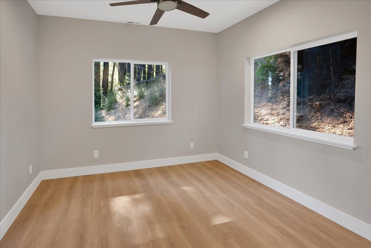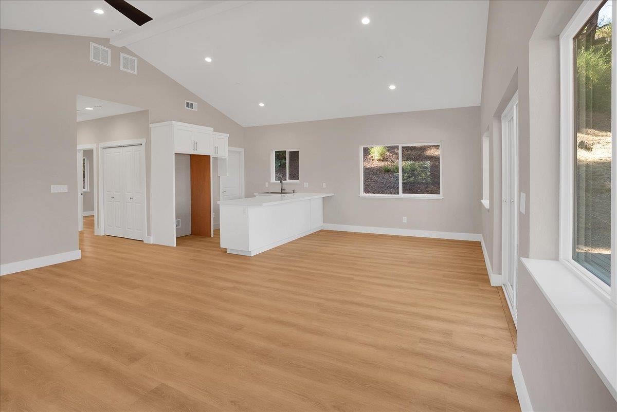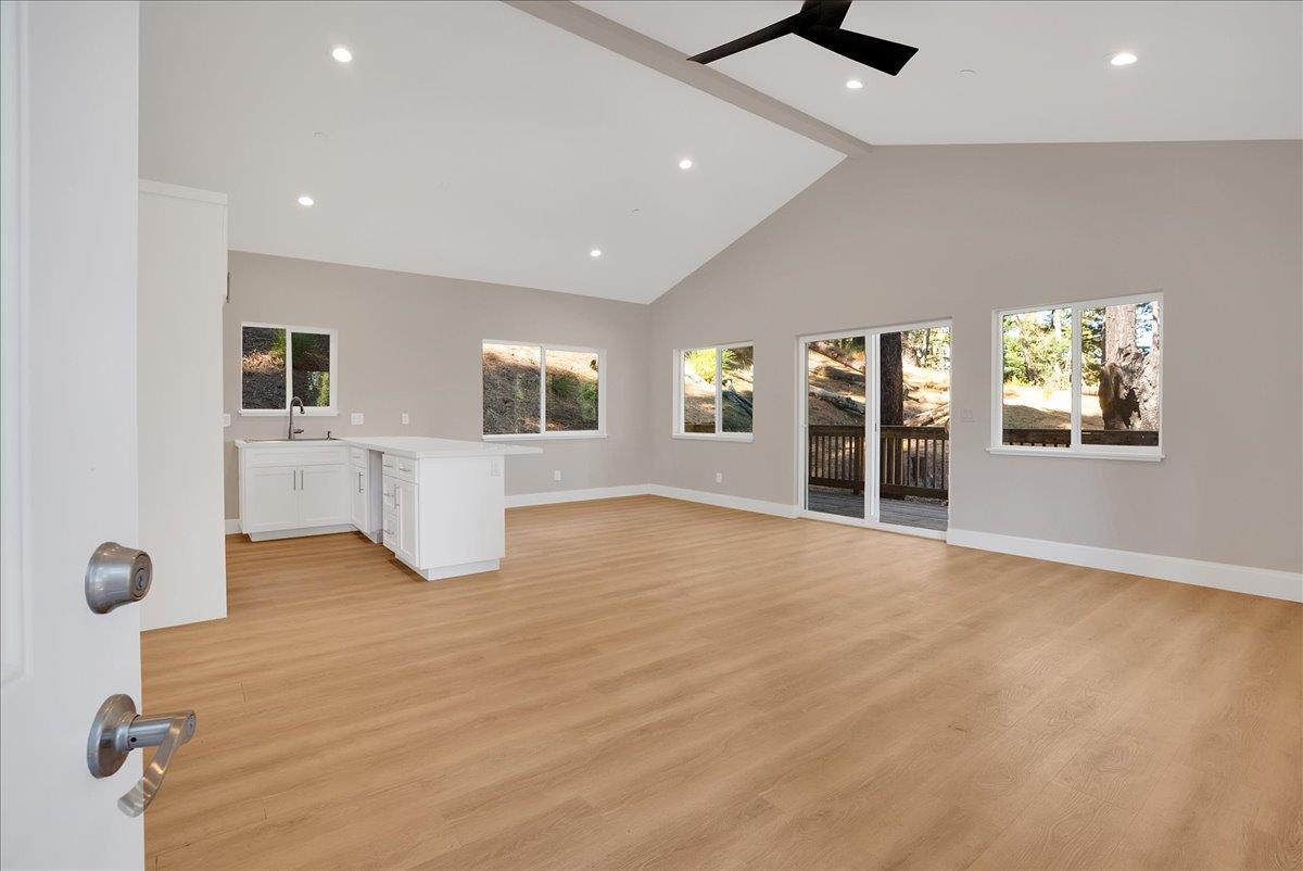Brand-new construction! Ridge-top area sunshine! - Welcome to 350 Woodland Way. This bright & sunny home is never-before lived-in, NEW construction on a large, three-quarter+ acre lot. Light-filled & comfortable 2/1 home in expansive & open setting near the top of the ridge. Spacious, tall, vaulted ceiling living area & open-plan kitchen with large pantry/storage area & beautiful quartz counter tops, soft-close drawers, quality cabinets & hardware are ready for your appliances. Seamless sliding door access to new wood deck for your sunny indoor/outdoor lifestyle. Fully insulated with double pane windows. Forced air heating & cooling. Convenient Washer/Dryer center in hall closet. Absolutely fresh bathroom with shower over tub. Fresh gravel on driveway entries. This new home is a private & calm retreat that's close to town, an easy drive to the beach & is a great commuter location for Highway 9, Bear Creek Road & Highway 17 to Silicon Valley. A brand new home in a great setting can be yours!