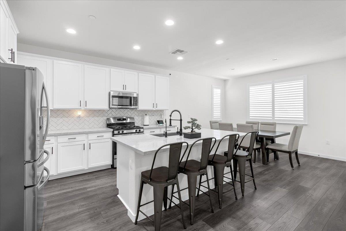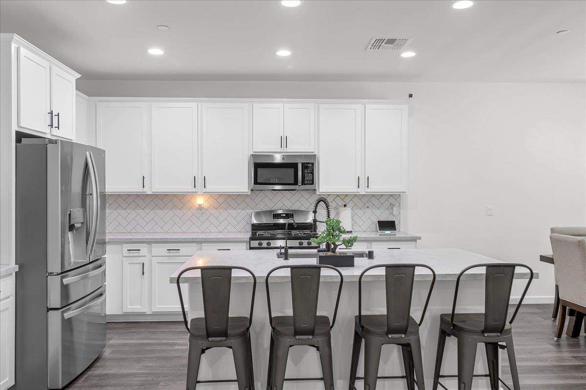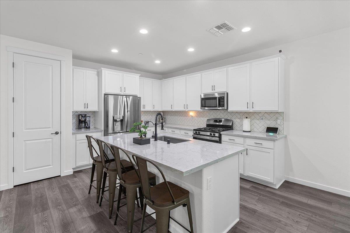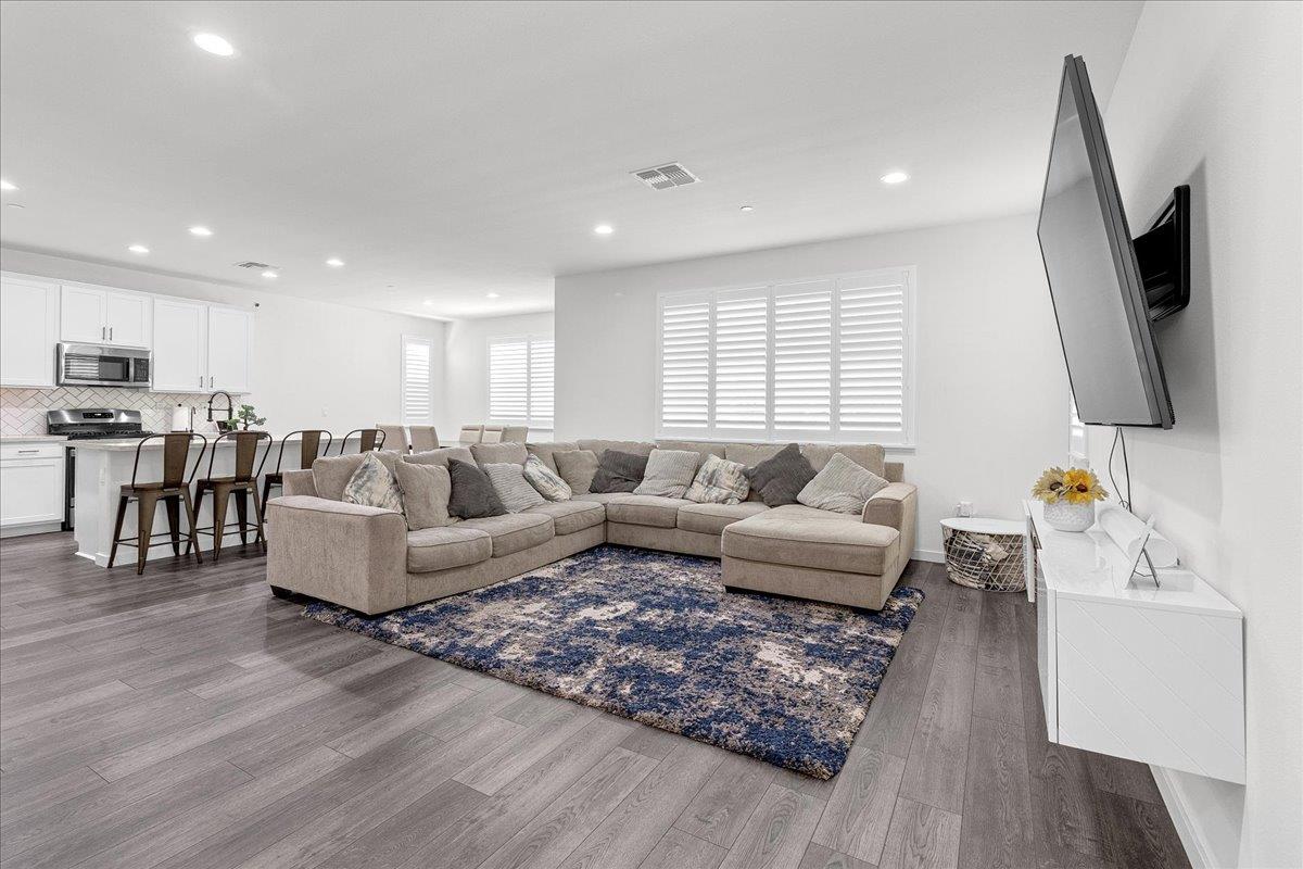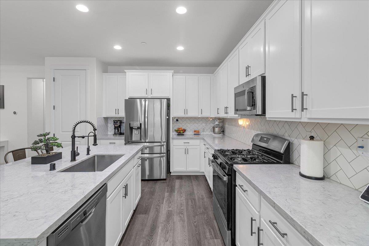 Welcome to this beautiful 4 bedroom 3 bathroom DaNova home built in 2021. This home shows pride of ownership and it feels practically new. It has tons of space, it's bright and airy, and is conveniently has a full bed and bath downstairs perfect for visiting family or friends. Some of the upgrades include high quality laminate flooring throughout first floor, high end carpet upstairs with memory foam cushion, quartz countertops and custom Herringbone pattern backsplash in kitchen, and stainless steel appliances. All cabinets are soft close, have oil rubbed bronze pulls, and there's even a trash bin roll out cabinet! The home is equipped with a dual zone climate AC/heating system with a Google nest climate control setup. Let's not forget the exterior covered patio, an extended custom concrete patio and concrete around both sides of home, extended driveway sides, and newer retaining wall making backyard feel larger with plenty of room for grilling and having gatherings. There is just so much more that this amazing home has to offer! Don't miss this one!