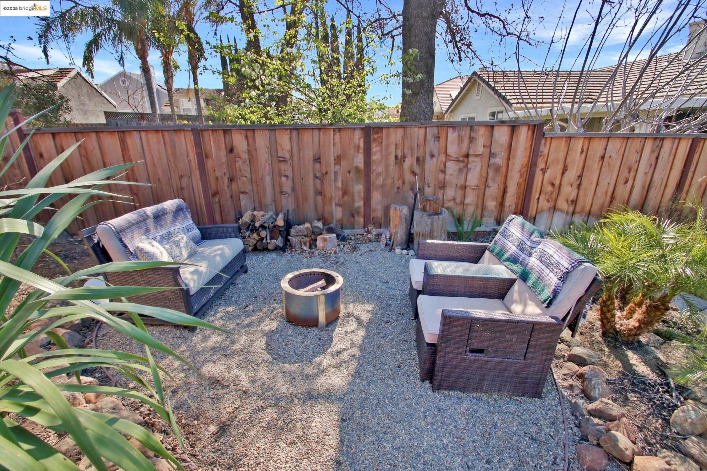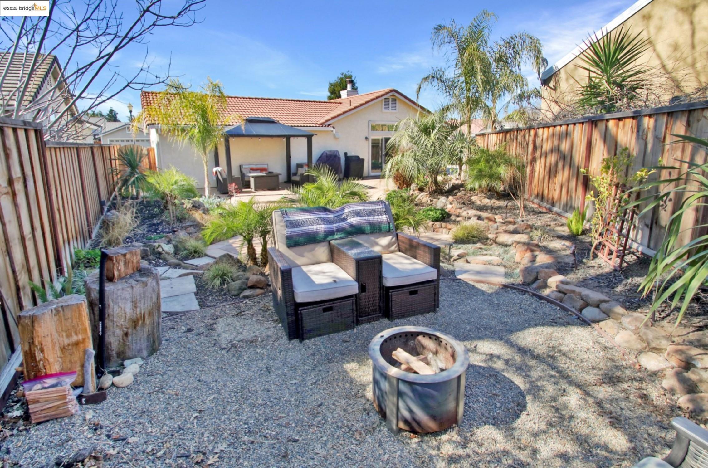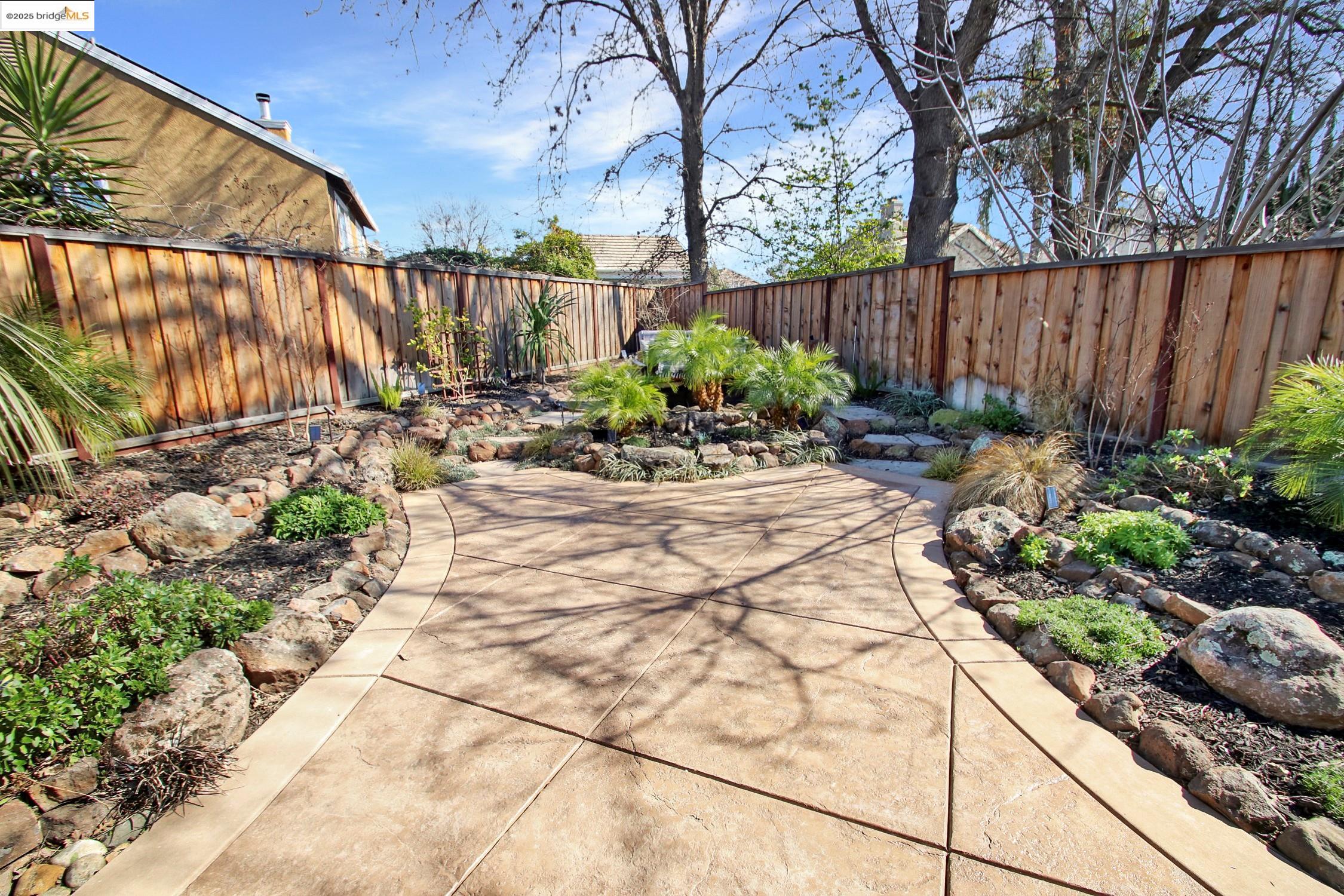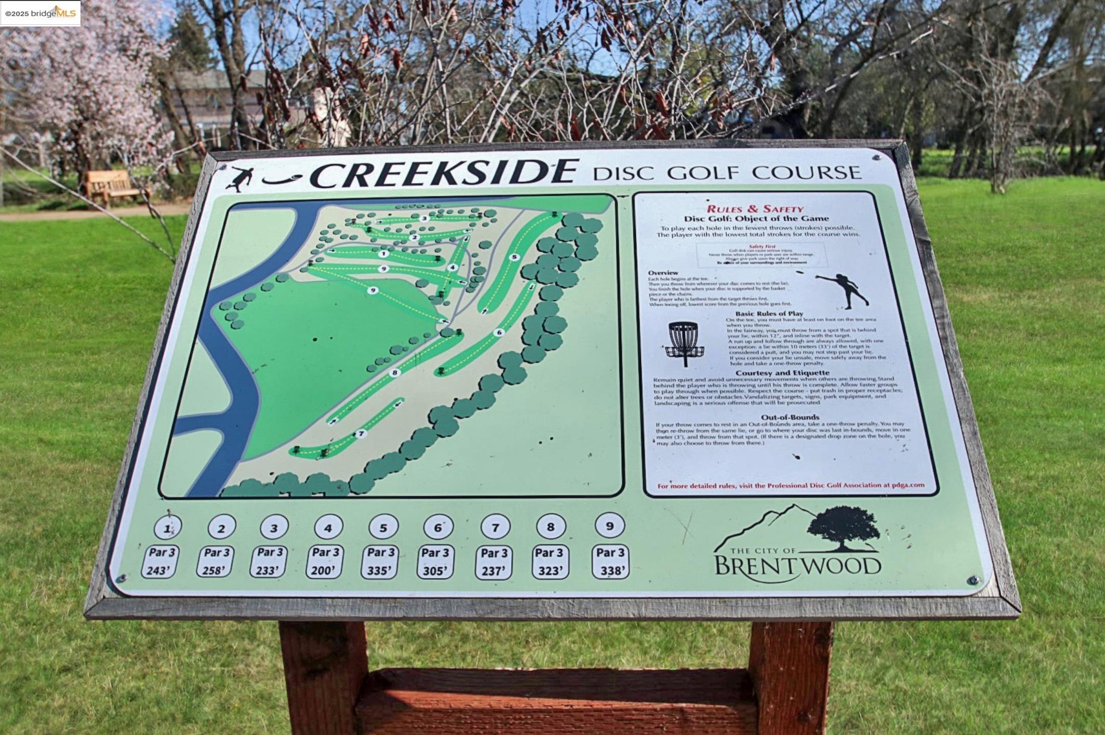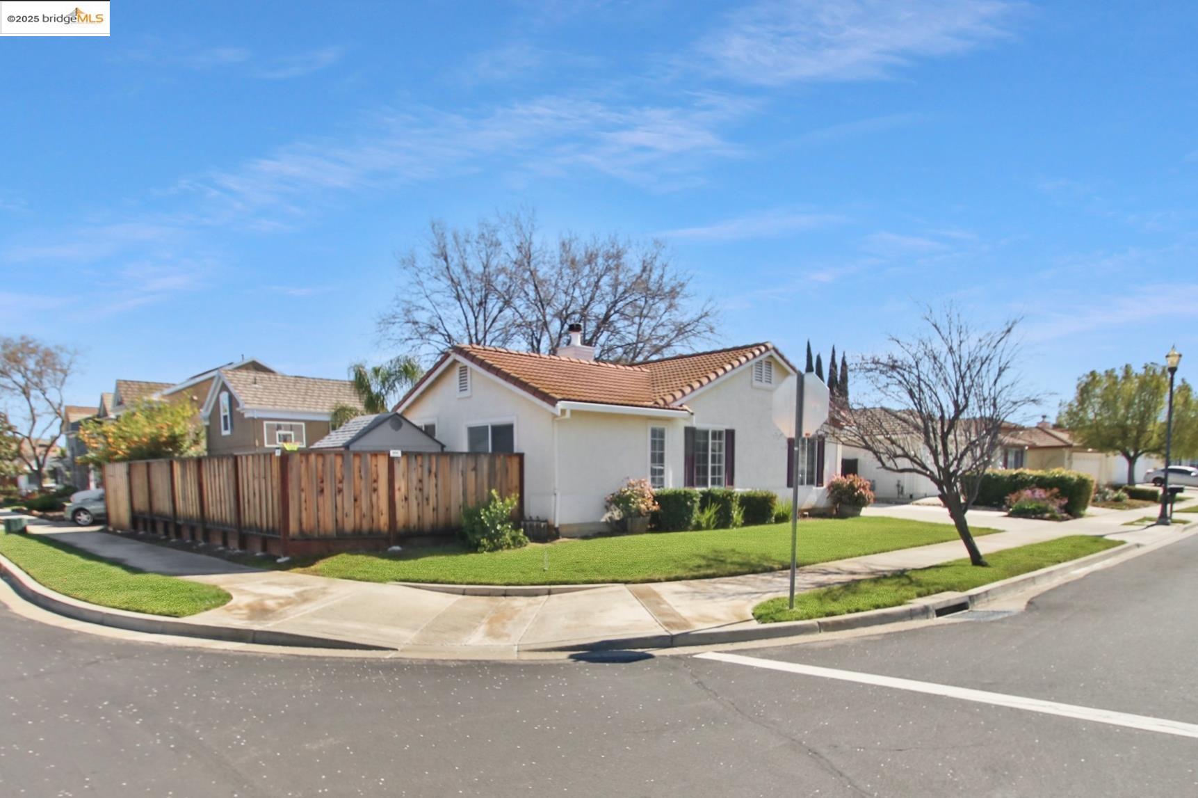 Great single story Pulte home on a spacious corner lot. The beautifully landscaped backyard offers a private retreat featuring a fire-pit area tucked away in a secluded corner. Home has 3 bedrooms & 2 baths, complimented by a large living room with vaulted ceiling. Kitchen includes stainless steel appliances. Refrigerator stays. Ceiling fan/light fixtures in each bedroom + the living room. Gorgeous laminate flooring. Fireplace w/gas starter & decorative log-set. Upgraded sliding glass doors with between-the-glass blinds. Many newer 2” blinds. Covered porch welcomes you and your guests. Large stamped concrete patio. Gated side yard access. Easily maintained yard! Newer fencing! Laundry room with cabinets. Washer & dryer stay! Ring doorbell & 2 cameras stay! Smart thermostat. Keyless entry. Driveway widened to provide more parking. Great neighborhood & a short walk to Creekside Park, one of Brentwood’s best parks! So many outdoor recreational & leisure activities: Pickleball, tennis, basketball, disc-golf, performing stage & seating, multiple play structures, BBQs, picnic tables, and so much more. All of this set along side of historic Marsh Creek and walking trails. Great Brentwood schools.