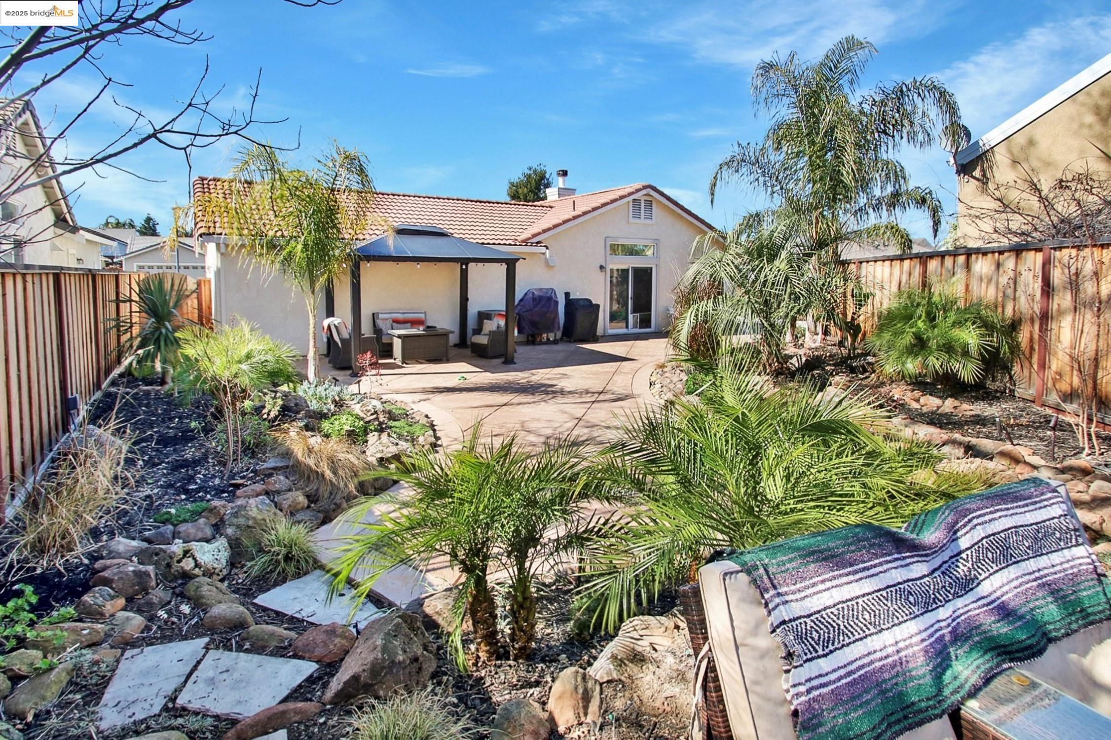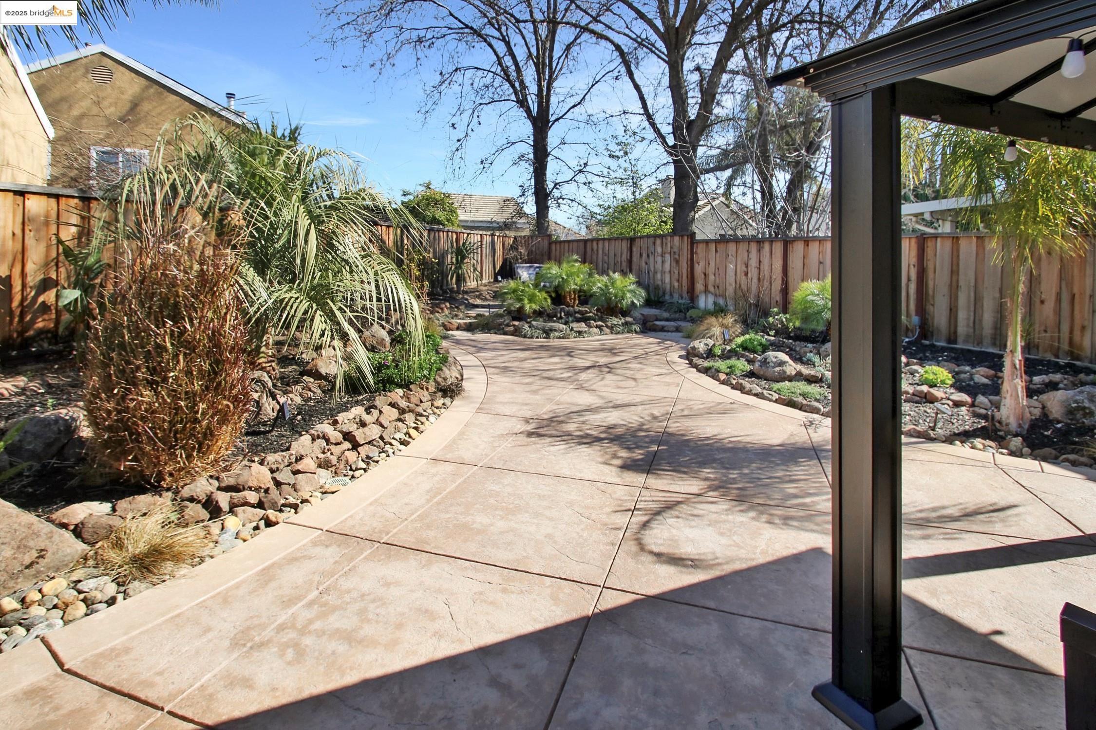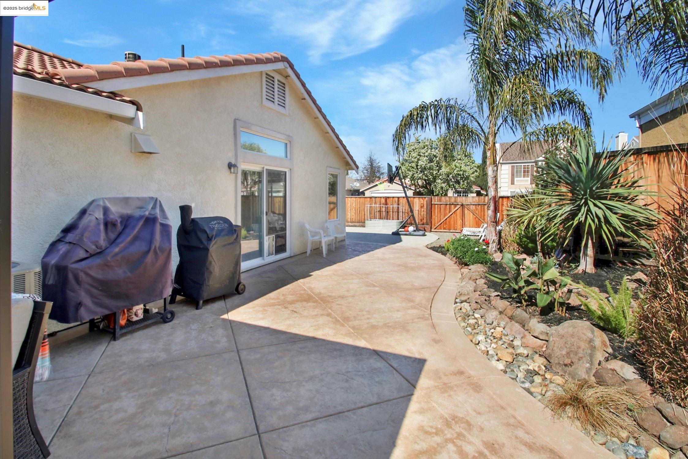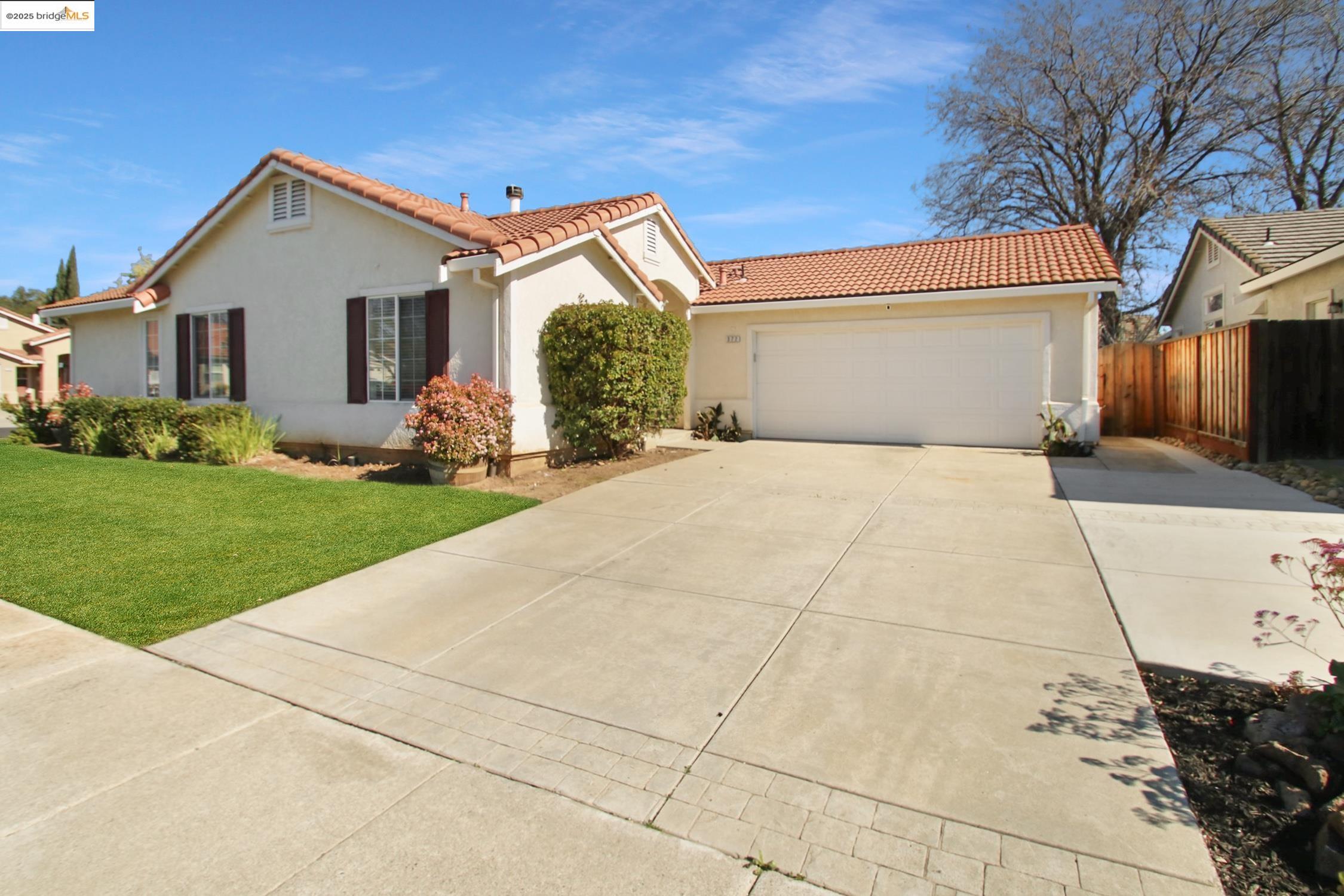 Great single story Pulte home on a spacious corner lot. The beautifully landscaped backyard offers a private retreat featuring a fire-pit area tucked away in a secluded corner. Home has 3 bedrooms & 2 baths, complimented by a large living room with vaulted ceiling. Kitchen includes stainless steel appliances. Refrigerator stays. Ceiling fan/light fixtures in each bedroom + the living room. Gorgeous laminate flooring. Fireplace w/gas starter & decorative log-set. Upgraded sliding glass doors with between-the-glass blinds. Many newer 2” blinds. Covered porch welcomes you and your guests. Large stamped concrete patio. Gated side yard access. Easily maintained yard! Newer fencing! Laundry room with cabinets. Washer & dryer stay! Ring doorbell & 2 cameras stay! Smart thermostat. Keyless entry. Driveway widened to provide more parking. Great neighborhood & a short walk to Creekside Park, one of Brentwood’s best parks! So many outdoor recreational & leisure activities: Pickleball, tennis, basketball, disc-golf, performing stage & seating, multiple play structures, BBQs, picnic tables, and so much more. All of this set along side of historic Marsh Creek and walking trails. Great Brentwood schools.
