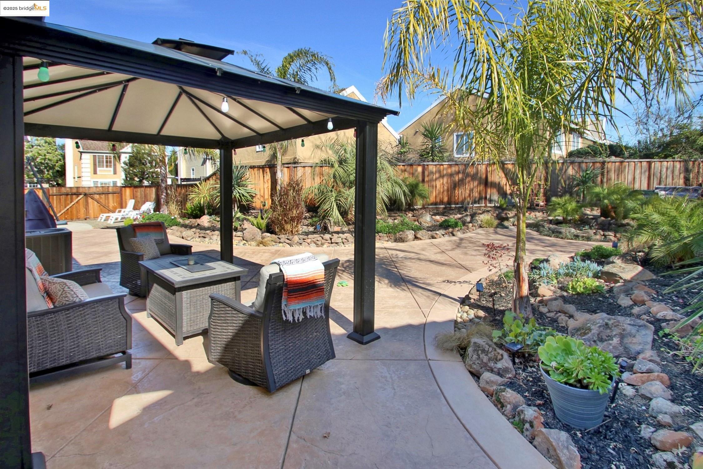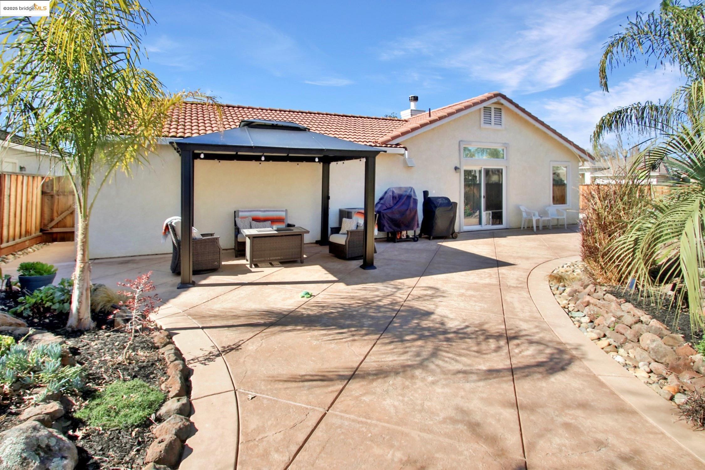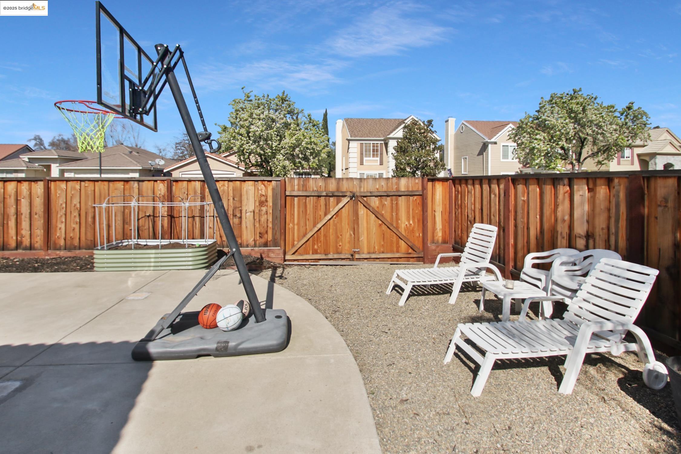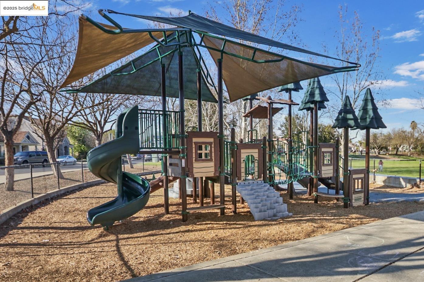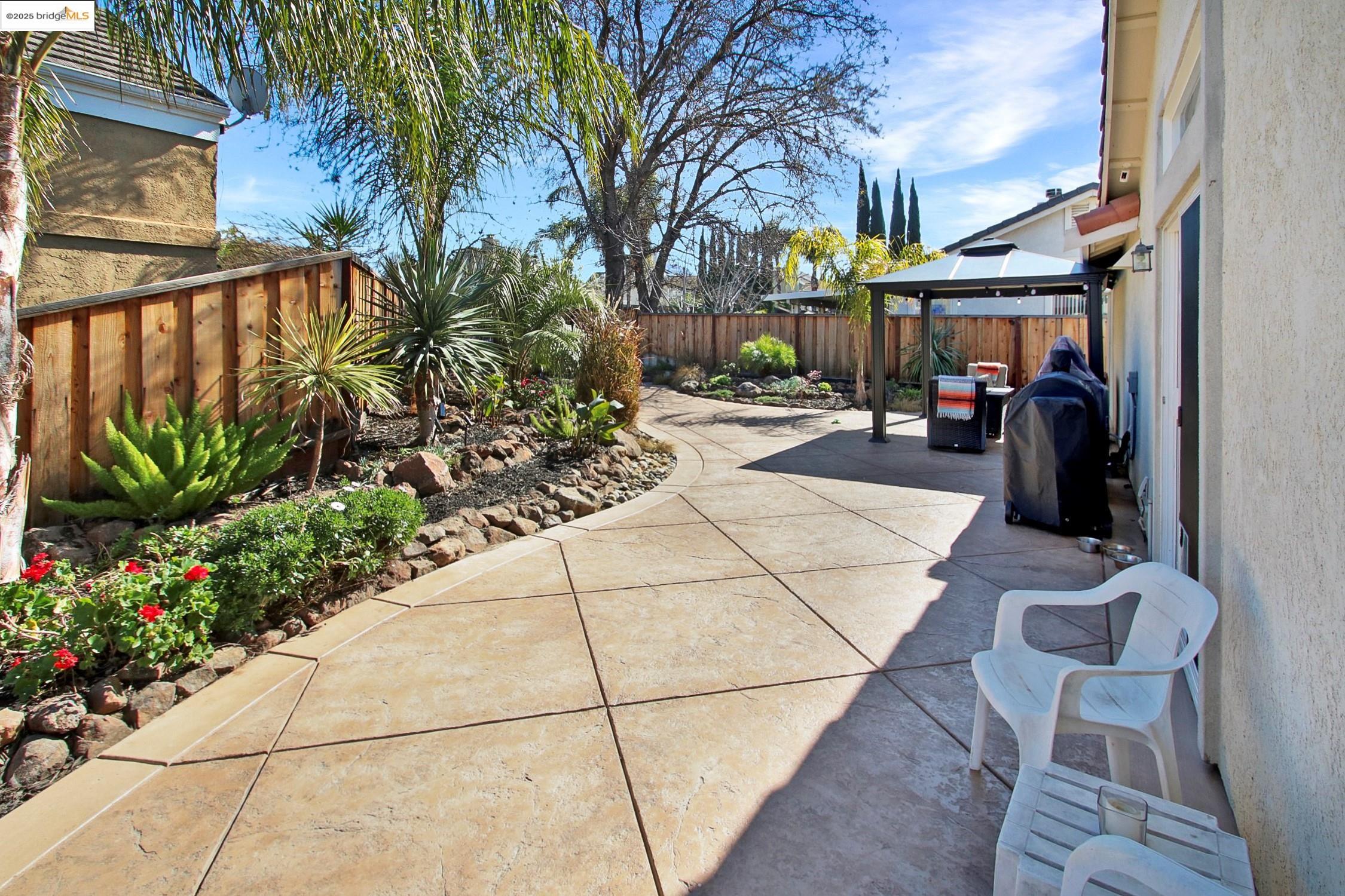 Great single story Pulte home on a spacious corner lot. The beautifully landscaped backyard offers a private retreat featuring a fire-pit area tucked away in a secluded corner. Home has 3 bedrooms & 2 baths, complimented by a large living room with vaulted ceiling. Kitchen includes stainless steel appliances. Refrigerator stays. Ceiling fan/light fixtures in each bedroom + the living room. Gorgeous laminate flooring. Fireplace w/gas starter & decorative log-set. Upgraded sliding glass doors with between-the-glass blinds. Many newer 2” blinds. Covered porch welcomes you and your guests. Large stamped concrete patio. Gated side yard access. Easily maintained yard! Newer fencing! Laundry room with cabinets. Washer & dryer stay! Ring doorbell & 2 cameras stay! Smart thermostat. Keyless entry. Driveway widened to provide more parking. Great neighborhood & a short walk to Creekside Park, one of Brentwood’s best parks! So many outdoor recreational & leisure activities: Pickleball, tennis, basketball, disc-golf, performing stage & seating, multiple play structures, BBQs, picnic tables, and so much more. All of this set along side of historic Marsh Creek and walking trails. Great Brentwood schools.
