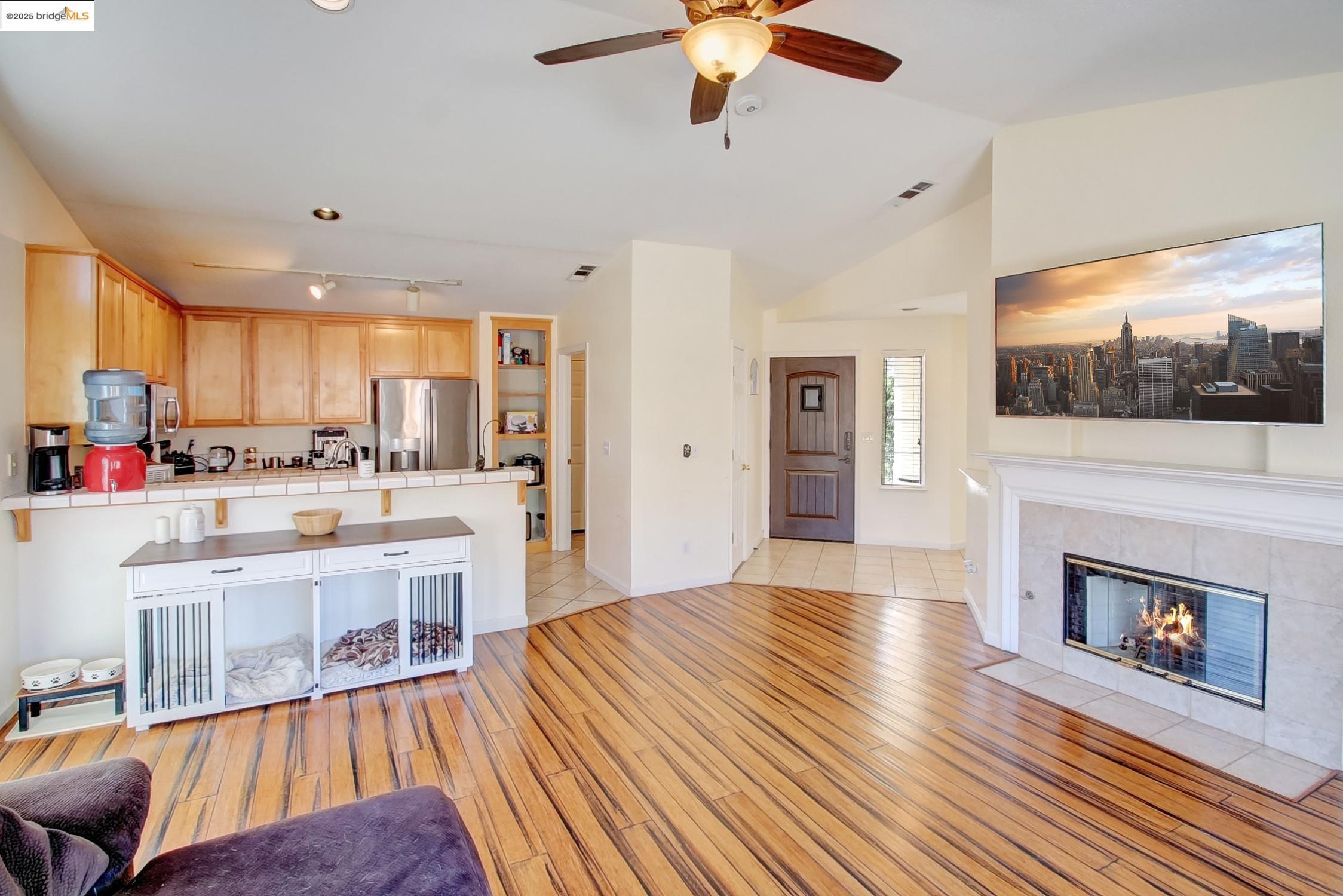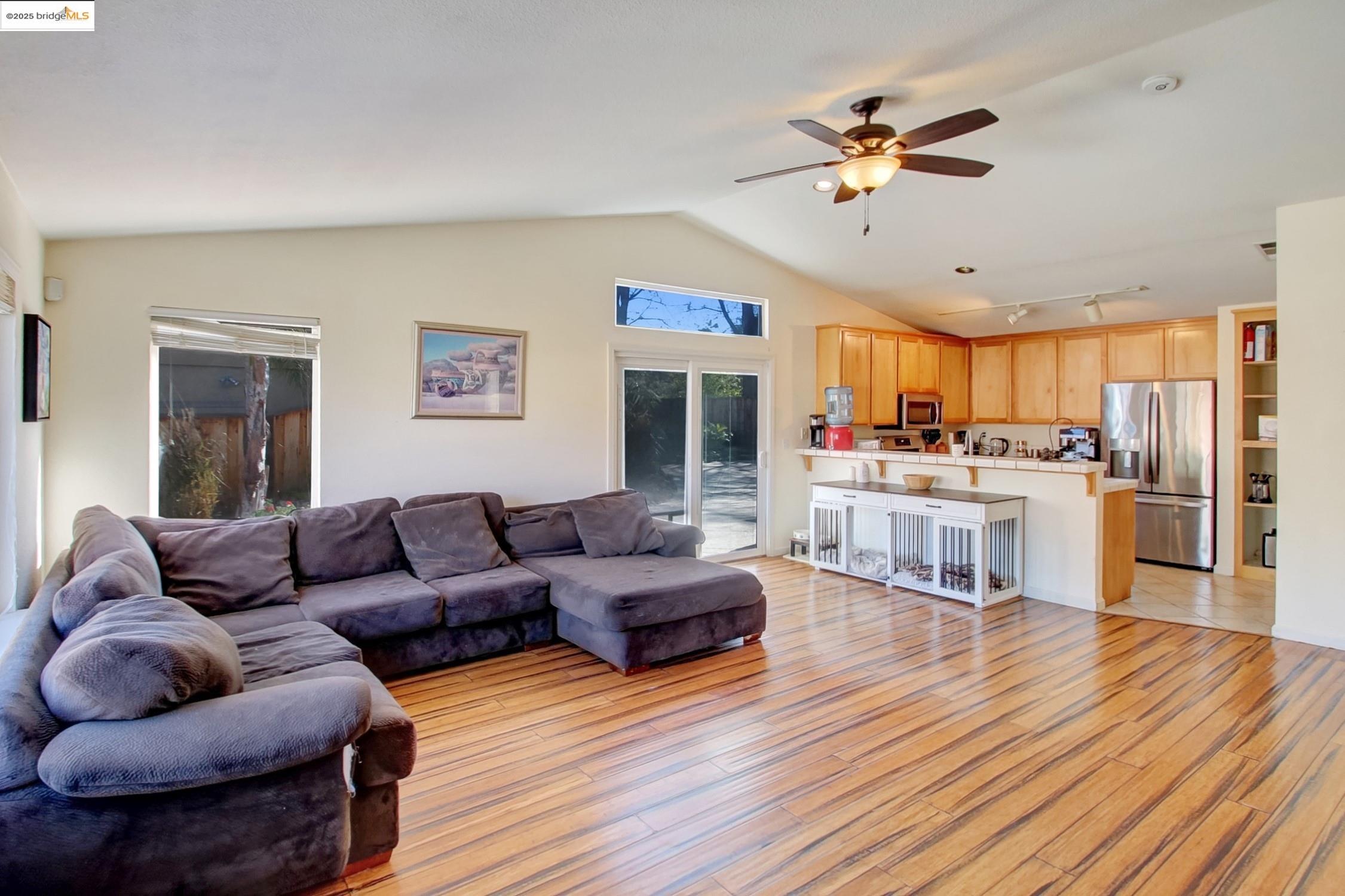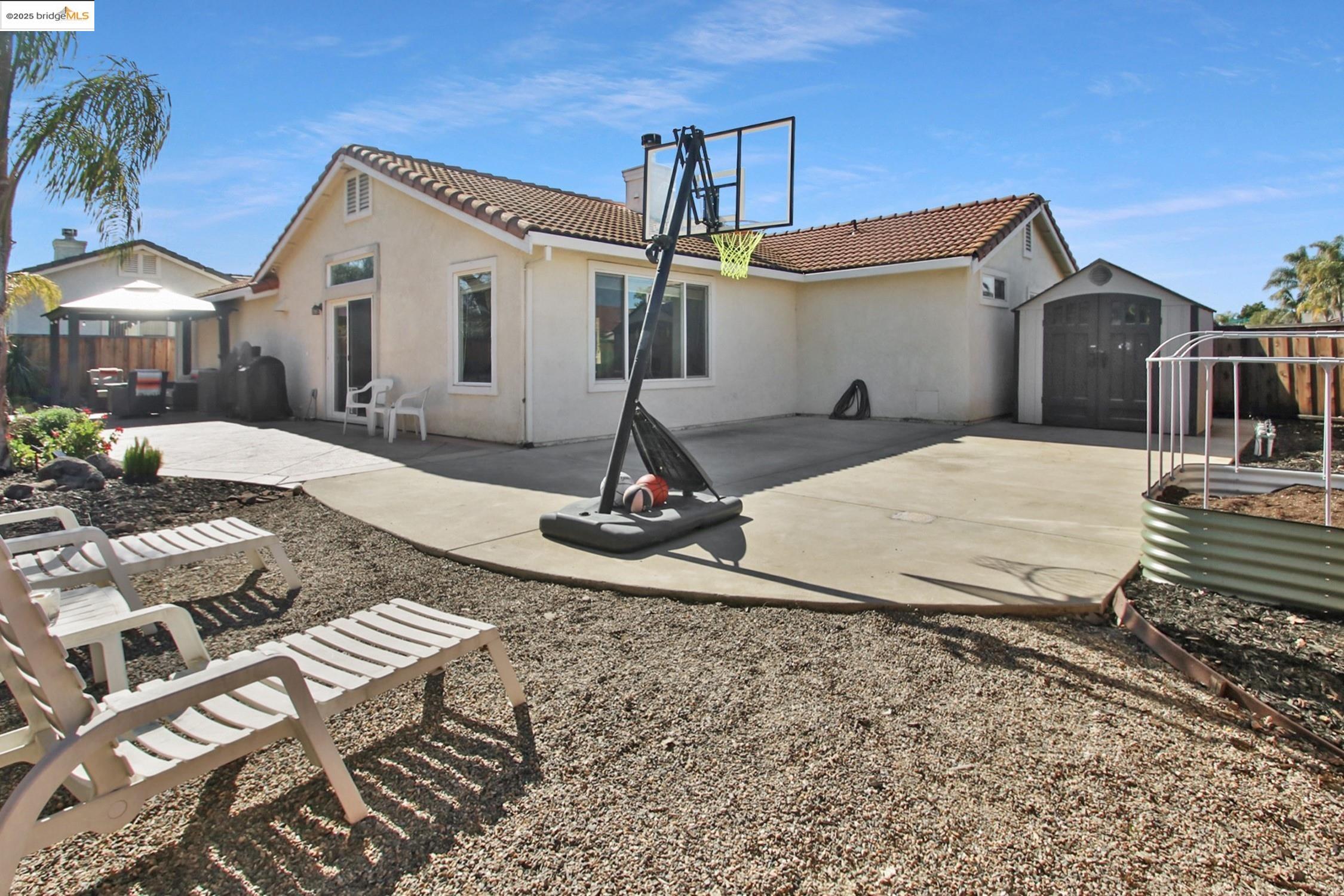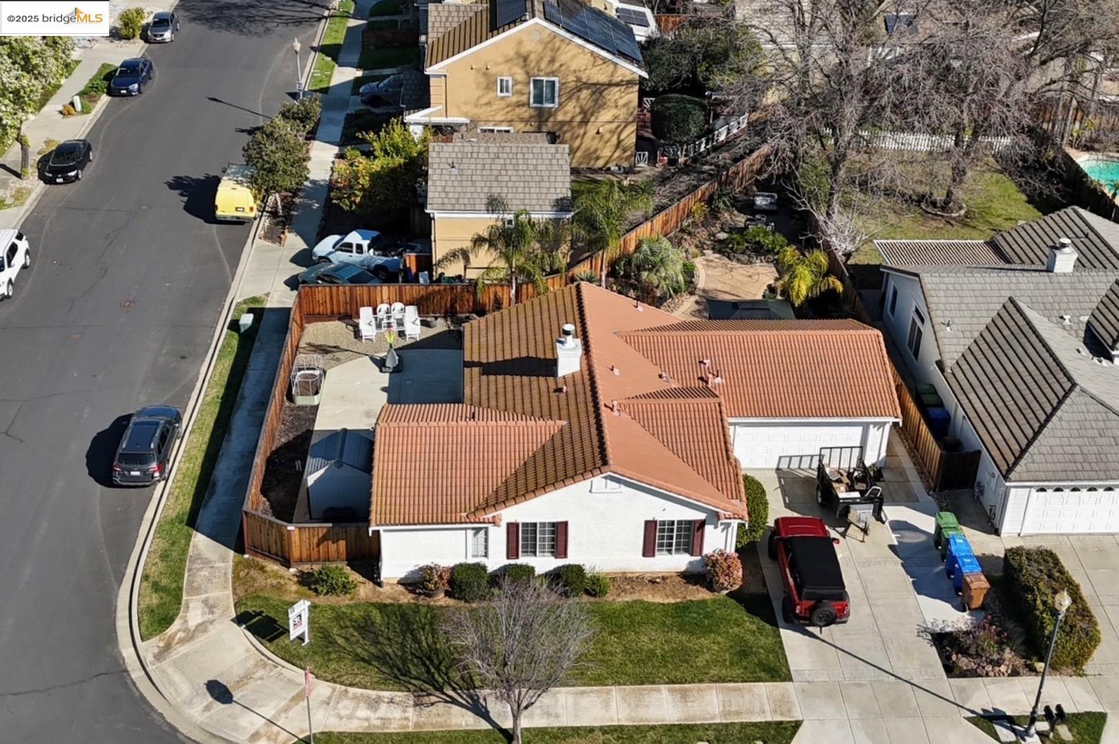 Great single story Pulte home on a spacious corner lot. The beautifully landscaped backyard offers a private retreat featuring a fire-pit area tucked away in a secluded corner. Home has 3 bedrooms & 2 baths, complimented by a large living room with vaulted ceiling. Kitchen includes stainless steel appliances. Refrigerator stays. Ceiling fan/light fixtures in each bedroom + the living room. Gorgeous laminate flooring. Fireplace w/gas starter & decorative log-set. Upgraded sliding glass doors with between-the-glass blinds. Many newer 2” blinds. Covered porch welcomes you and your guests. Large stamped concrete patio. Gated side yard access. Easily maintained yard! Newer fencing! Laundry room with cabinets. Washer & dryer stay! Ring doorbell & 2 cameras stay! Smart thermostat. Keyless entry. Driveway widened to provide more parking. Great neighborhood & a short walk to Creekside Park, one of Brentwood’s best parks! So many outdoor recreational & leisure activities: Pickleball, tennis, basketball, disc-golf, performing stage & seating, multiple play structures, BBQs, picnic tables, and so much more. All of this set along side of historic Marsh Creek and walking trails. Great Brentwood schools.