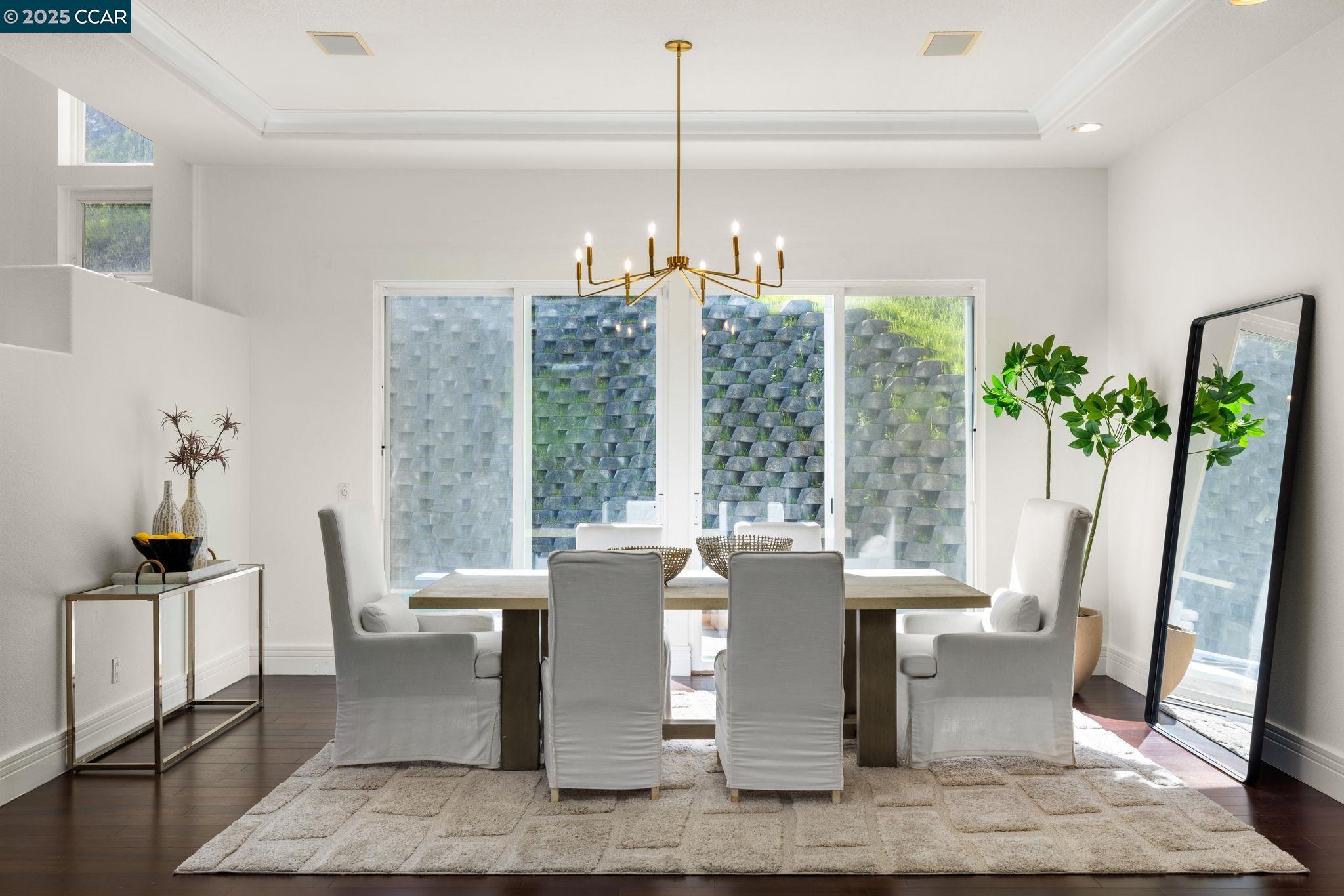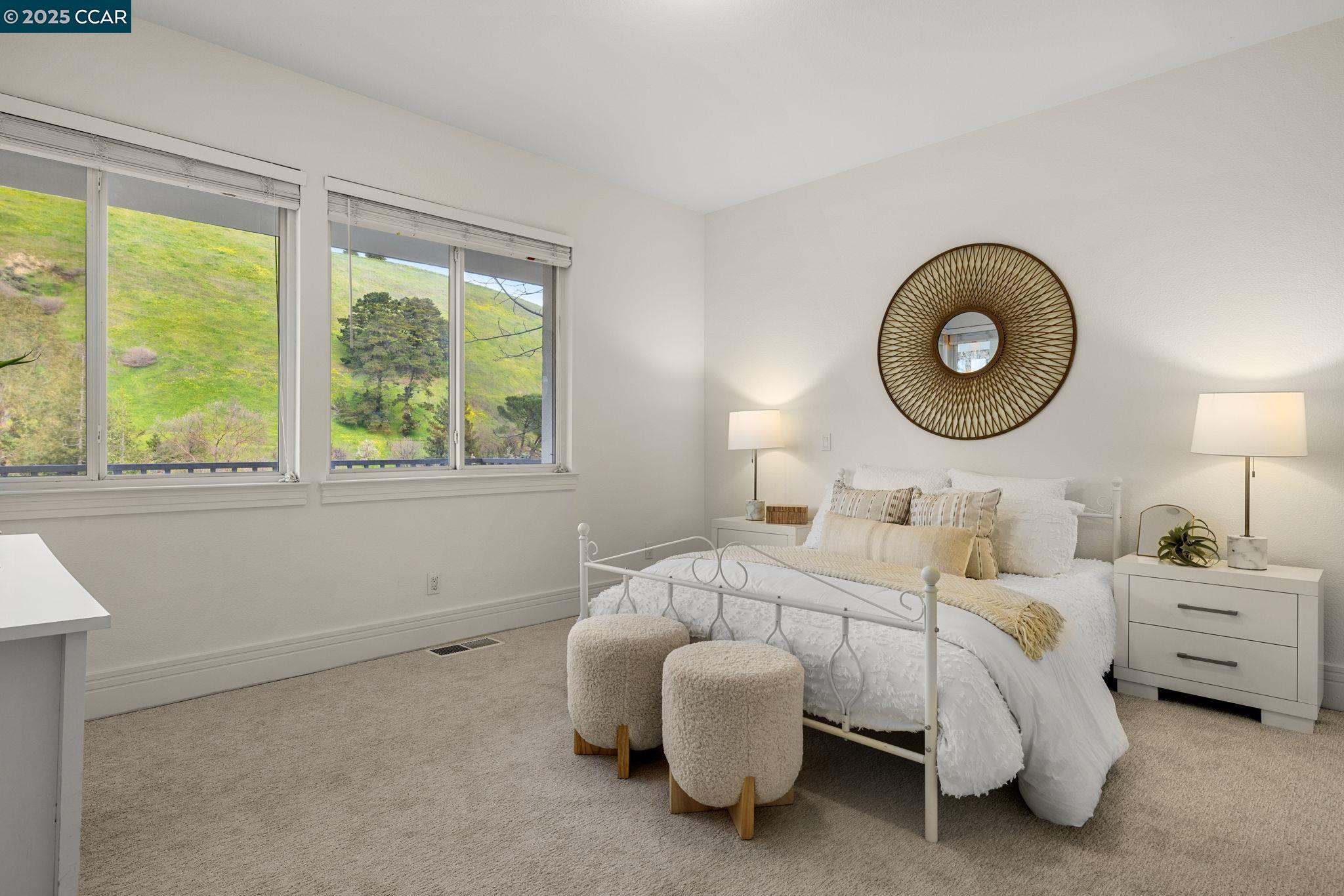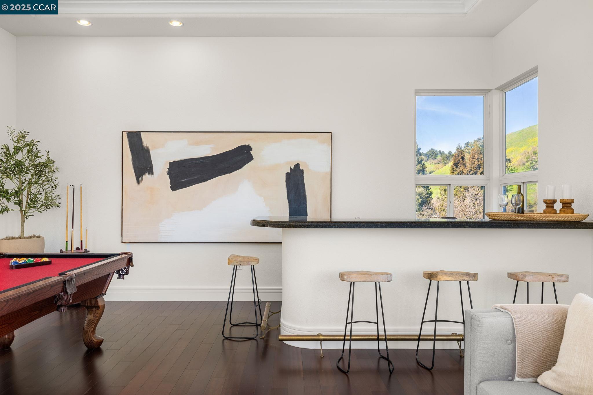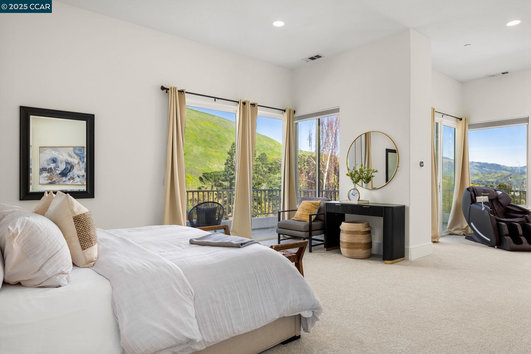 Spectacular modern hillside estate perched at the top of a private drive. Nestled on an expansive knoll on the Lafayette/Walnut Creek border, come enjoy breathtaking Mt Diablo vistas, ridgetop views & feelings of tranquility. This stunning property redefines contemporary living with its expansive 4,384 Sq Ft, high ceilings & views from most every window. Boasting 5 spacious bedrooms, 3 full baths + 2 half baths, this residence offers a perfect blend of comfort & flexibility. High ceilings create an airy, open ambiance, enhancing the modern home elegance. Spacious & open floor plan makes it ideal for everyday living. Grand entertaining spaces with a tiered floor plan offer the possibility for multi-generational living, private guest quarters or au pair set up. Bonus playroom, media room, exercise/gym area are icing on the cake. Remodeled kitchen is a chef's delight & you will love the convenient Elevator! SOLAR is owned. Sparkling pool, rooftop sun deck & secret garden! Situated equal distance (5 minutes) from bustling downtown Walnut Creek & quaint downtown Lafayette on prestigious Springbrook Rd on Acalanes Ridge. Convenient to everything: 2 BART stations, 680 & 24, shopping, dining, theatre, endless hiking & biking trails & open space. Walk to Acalanes High School.