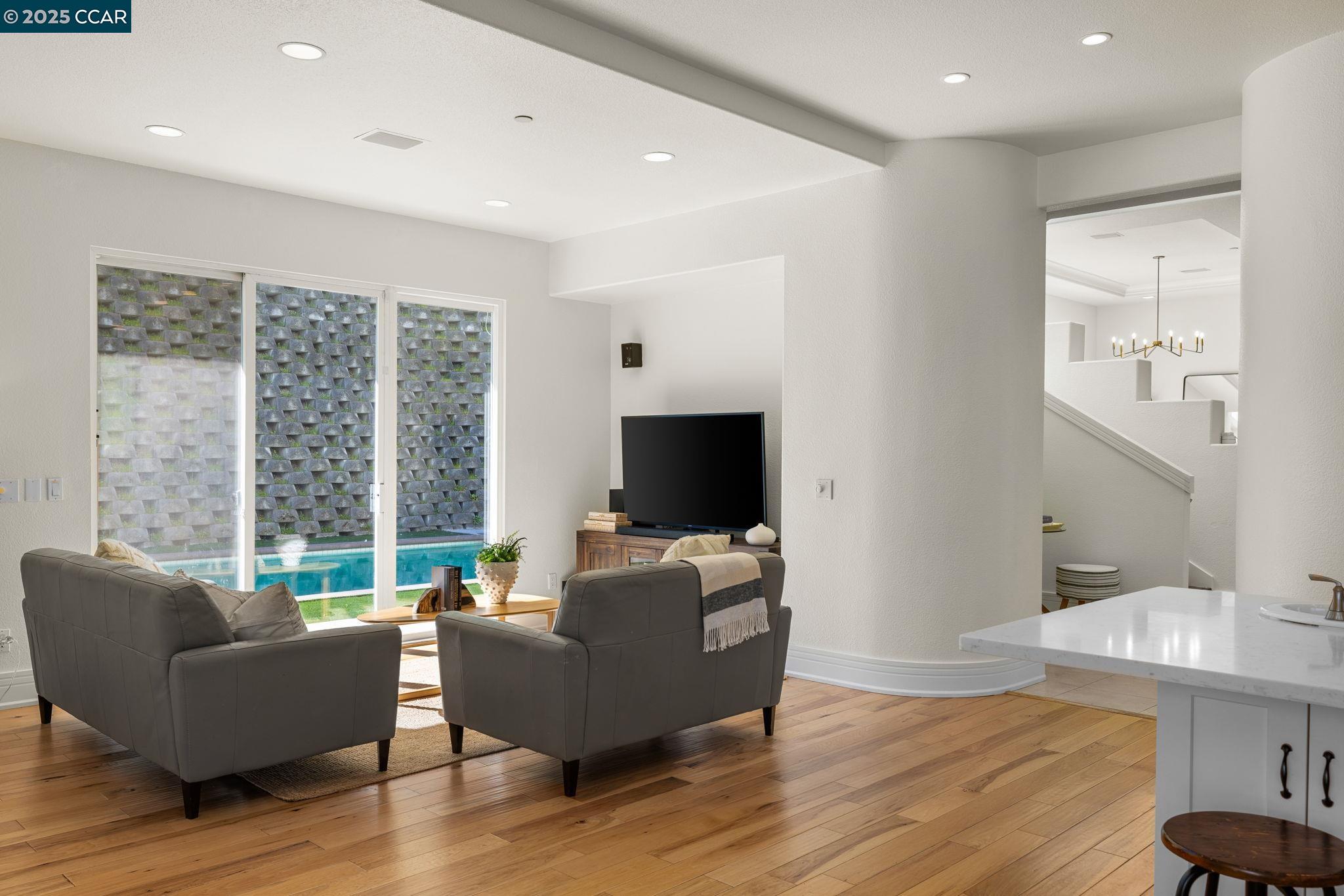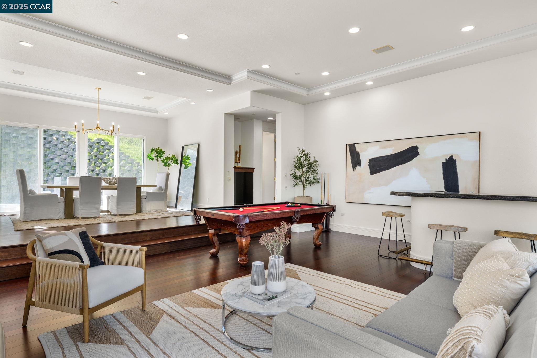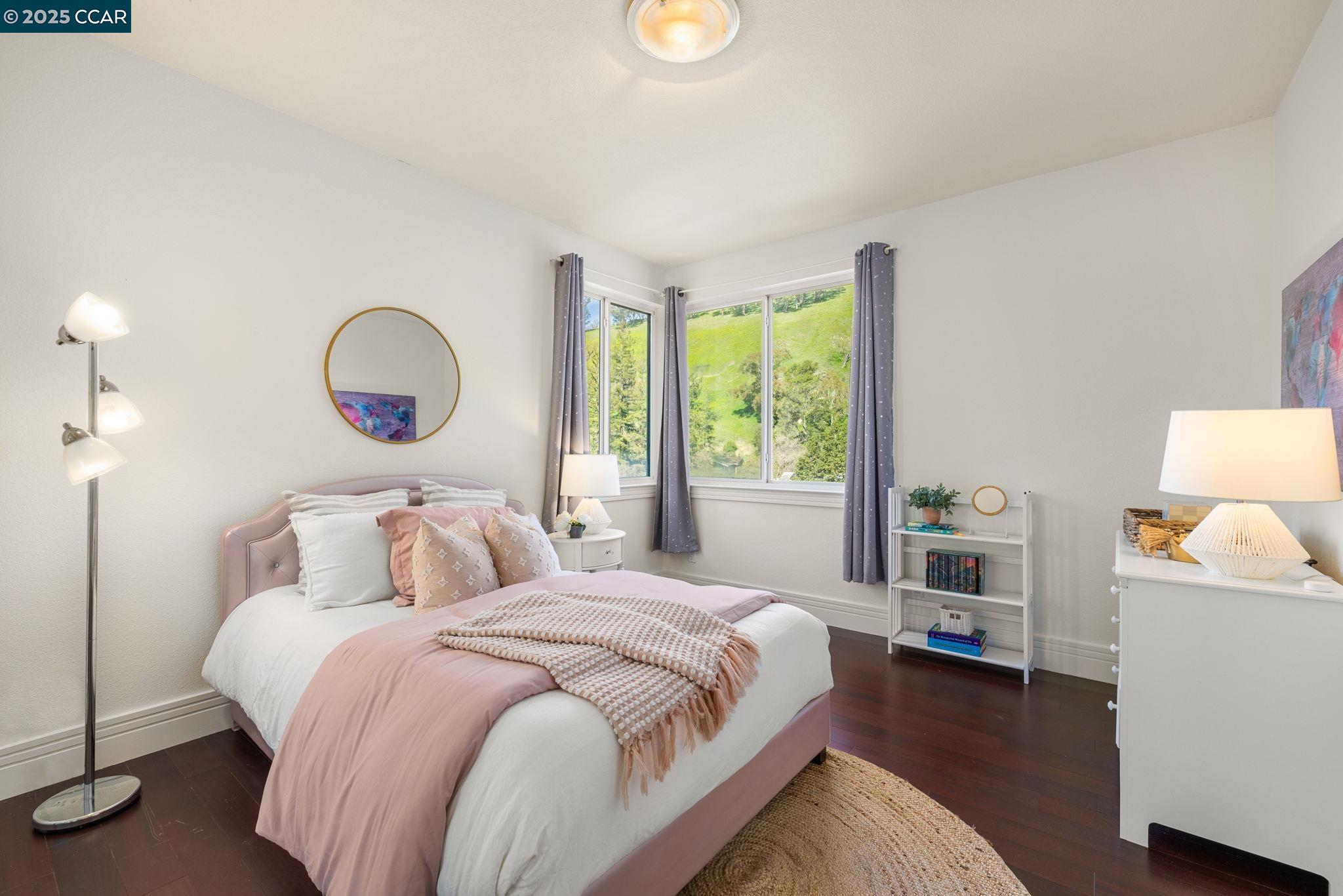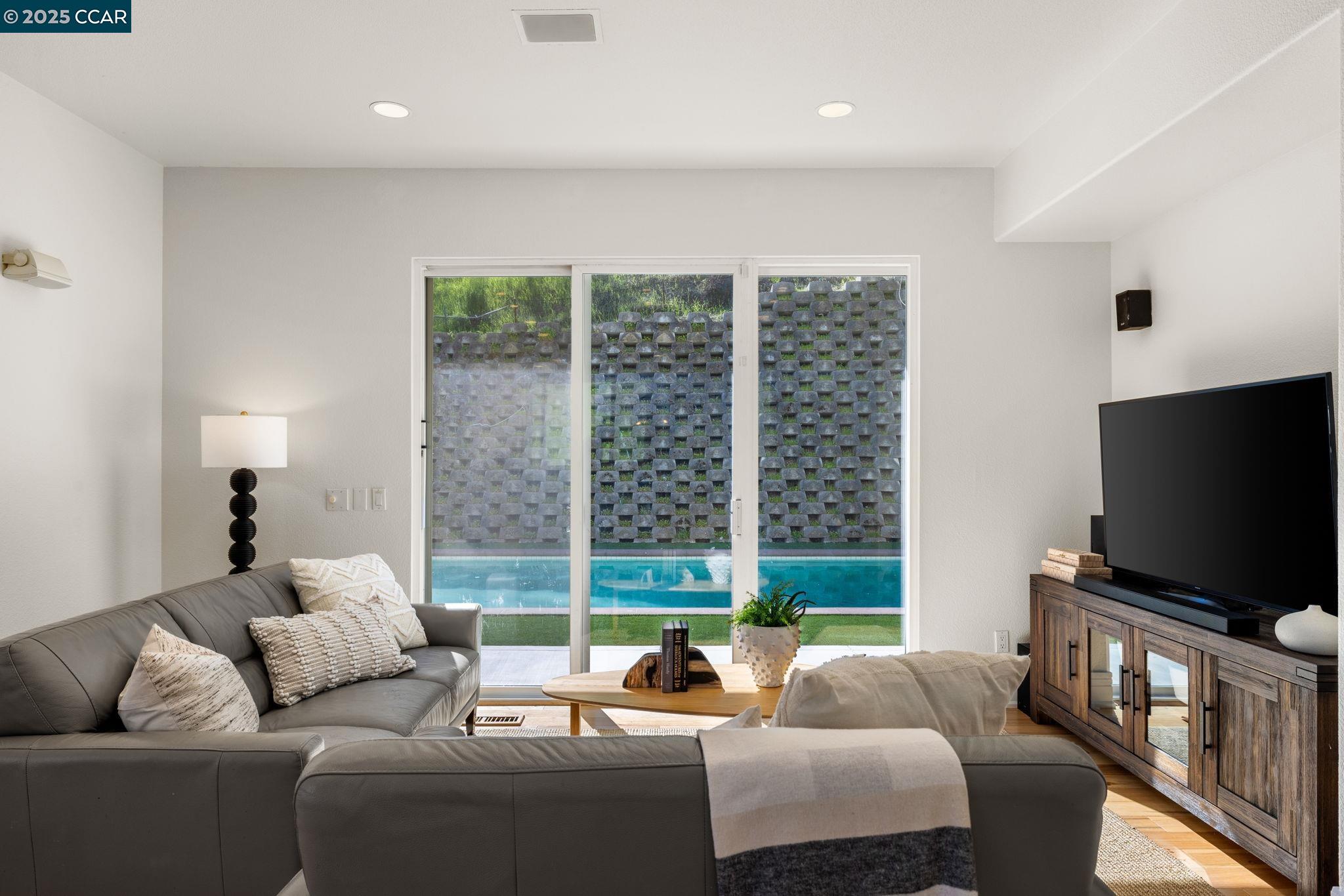 Spectacular modern hillside estate perched at the top of a private drive. Nestled on an expansive knoll on the Lafayette/Walnut Creek border, come enjoy breathtaking Mt Diablo vistas, ridgetop views & feelings of tranquility. This stunning property redefines contemporary living with its expansive 4,384 Sq Ft, high ceilings & views from most every window. Boasting 5 spacious bedrooms, 3 full baths + 2 half baths, this residence offers a perfect blend of comfort & flexibility. High ceilings create an airy, open ambiance, enhancing the modern home elegance. Spacious & open floor plan makes it ideal for everyday living. Grand entertaining spaces with a tiered floor plan offer the possibility for multi-generational living, private guest quarters or au pair set up. Bonus playroom, media room, exercise/gym area are icing on the cake. Remodeled kitchen is a chef's delight & you will love the convenient Elevator! SOLAR is owned. Sparkling pool, rooftop sun deck & secret garden! Situated equal distance (5 minutes) from bustling downtown Walnut Creek & quaint downtown Lafayette on prestigious Springbrook Rd on Acalanes Ridge. Convenient to everything: 2 BART stations, 680 & 24, shopping, dining, theatre, endless hiking & biking trails & open space. Walk to Acalanes High School.