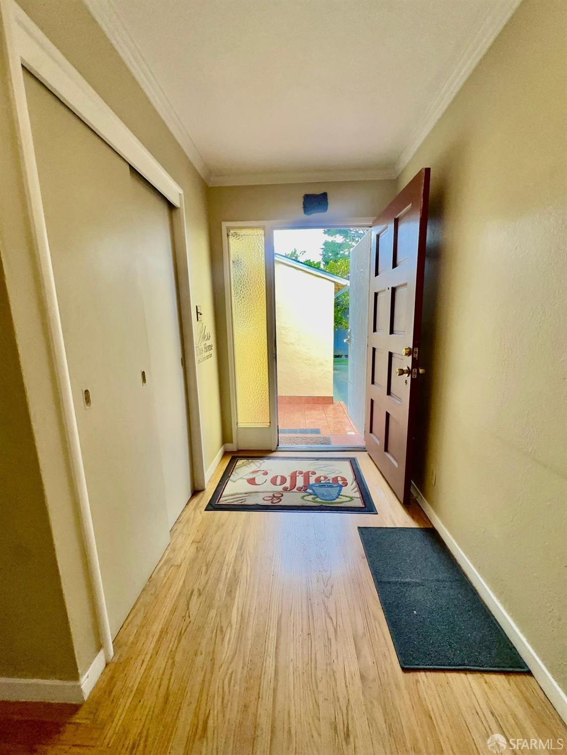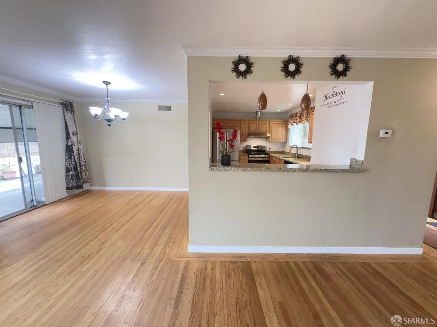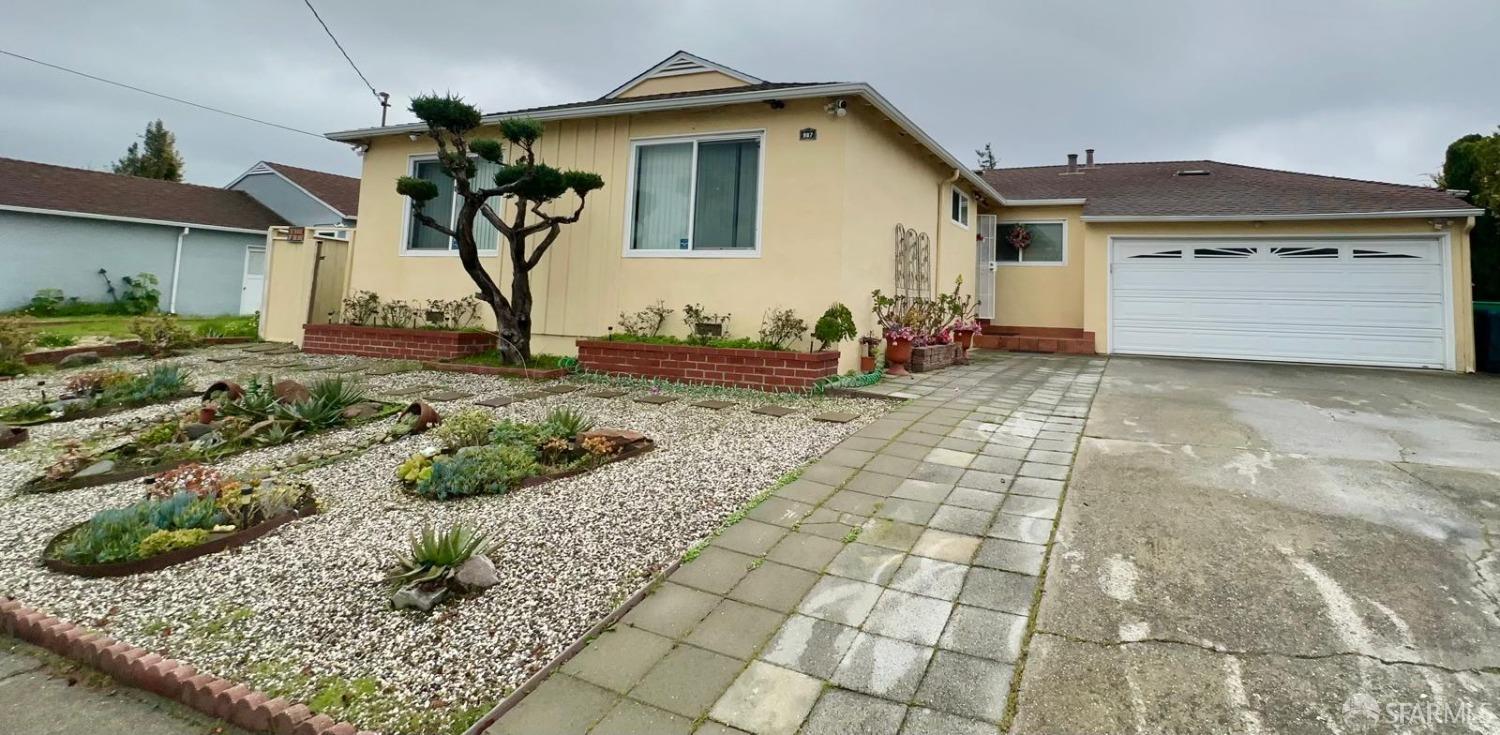 Welcome to 987 Castle Street, a beautifully maintained single-family home nestled in the desirable Halcyon Foothill neighborhood of San Leandro. This charming residence offers 3 spacious bedrooms and 1.5 bathrooms within 1,352 square feet of comfortable living space. Built in 1952, the home exudes timeless appeal with original hardwood floors throughout. The open-concept design seamlessly connects the living room to a cozy dining area, creating a warm and inviting atmosphere. The kitchen is equipped with modern amenities, including a breakfast bar, stone countertops, dishwasher, and a free-standing range/oven. Situated on a 5,074 square foot lot, the property boasts a drought-tolerant landscaped front yard, enhancing its curb appeal. Additional features include an attached two-car garage with laundry facilities, central heating, and a living room fireplace for cozy evenings. Conveniently located near great schools, shopping centers, and public transportation, this home offers both comfort and accessibility. With some tender love and care, you can put your imagination to modernize this home. Don't miss the opportunity to make 987 Castle Street your new home!