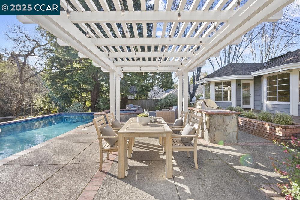 Single level living in The Downs offers convenience and community in a beloved neighborhood that is close to town, commute and top-rated schools. Residing on a .80 acre parcel, this thoughtful floor plan of nearly 3,700 sq ft provides ideal separation while enjoying spacious rooms, vaulted ceilings and walls of windows bringing the outdoors in year round. Grand formal living room, dining room with built-ins, open kitchen with breakfast nook and counter seating, family room with workstation, bar and stairs to a versatile additional room perfect for a kids haven, craft or workout room. The bedroom wing enjoys spacious rooms with an abundance of closet space and storage. The backyard is an entertainer's dream with a pool, spa, level lawn, and a creekside setting placing nature at your fingertips. 3 car garage with car charger, built-in storage, utility sink and interior + side yard access. This is a rare opportunity in one of Orinda's most sought-after neighborhoods. Just minutes from both Orinda and Lafayette's downtown amenities, BART stations, commute routes, and award-winning schools.